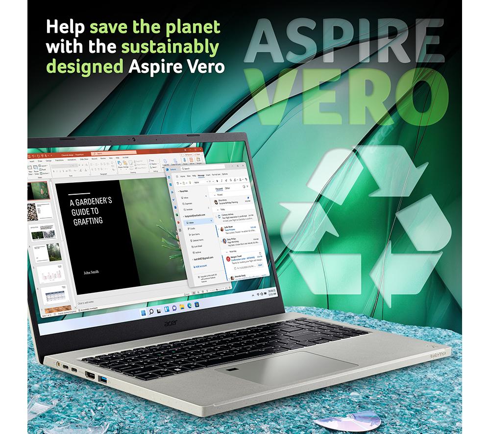 The Aspire Vero is a powerful laptop built to be kinder to our planet. The beautiful chassis is built using 30% post-consumer recycled plastic. But what's more important than recycling? Reducing and reusing - that's why the Vero is super easy to upgrade or repair. When the time comes, you can easily replace the RAM and storage, to keep the laptop snappy for a few more years. And the processor is future-proof too - the 13th Gen Intel® Core i7 CPU combines high-power performance cores and low-power efficiency cores for smooth everyday use and long battery life. Good to know - You'll have plenty of space for all your files on the speedy 1 TB SSD- 16 GB of RAM will make it easy to run multiple apps, documents and browser tabs- WiFi 6E gives you a stable Internet connection at the best speed available - The 15.6\