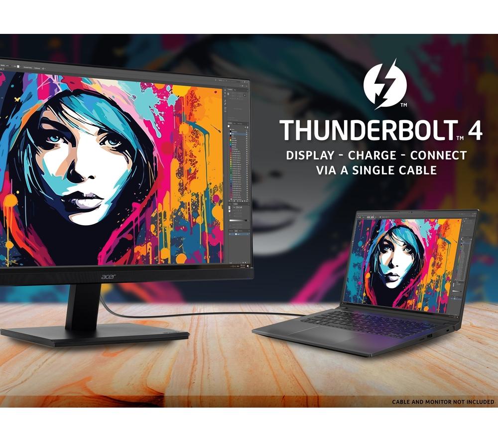 The Swift X is a powerful laptop wrapped in a slim aluminium body. The 13th Gen Intel® Core i7 processor inside has enough performance to handle heavy apps without a hiccup. It's supported by an NVIDIA GeForce RTX 4050 GPU, which is great for games and creative apps. The 2.8K OLED screen is perfect for colour grading, graphic design and catching up on Netflix. And the Thunderbolt 4 ports let you connect to almost anything – from super-fast SSDs, to 4K monitors.Good to know- The Full HD webcam will make you look great on work calls and catchups with friends- With up to 15 hours of battery life, you can leave the charging brick at home- Browse, stream and download faster than ever before thanks to WiFi 6E___________________________________________________________________________Intel, the Intel logo, Celeron, Intel Atom, Intel Core, Intel. Experience What's Inside, Intel Inside, the Intel Inside logo, Intel Unite, Iris, Pentium, Thunderbolt, the Thunderbolt logo, and Ultrabook are trademarks of Intel Corporation in the U.S. and/or other countries.