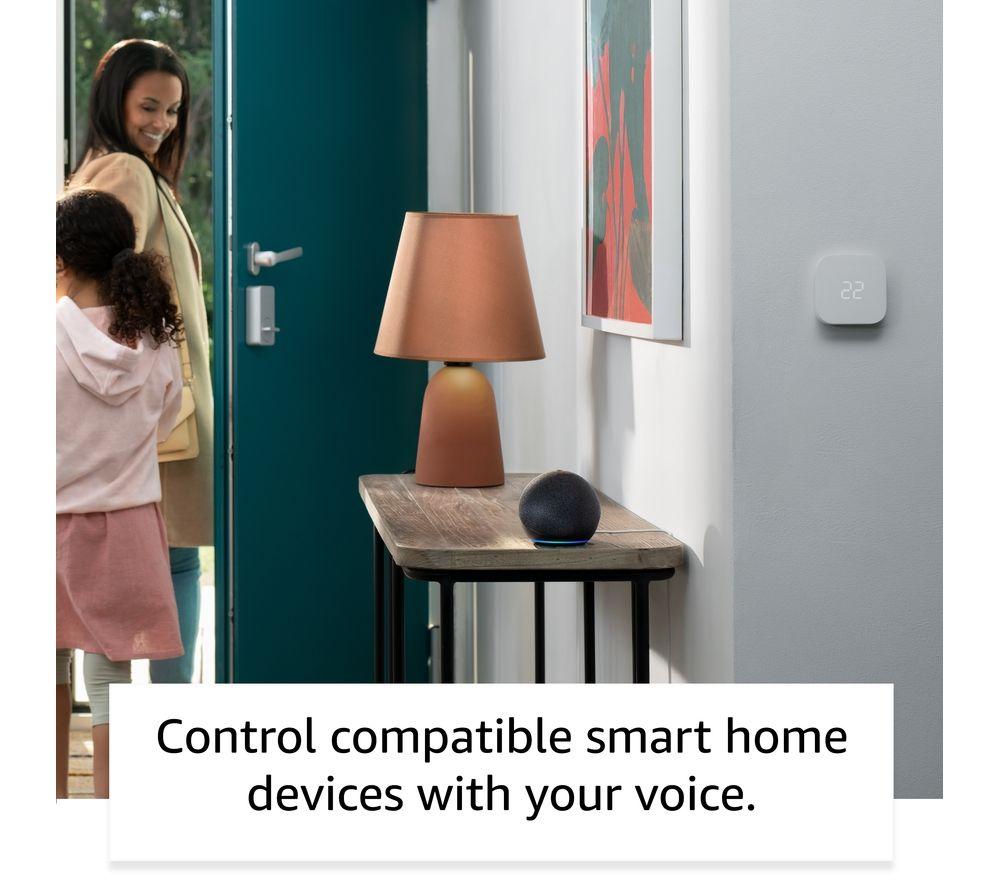 “Alexa, show me Amazon's best-sounding Echo Dot yet”. Meet the 5th generation of the Amazon Echo Dot. It's the same dinky size as the 4th gen, but Amazon have packed in a larger driver, so it sounds louder than ever. Playing music and podcasts from the likes of Amazon Music, Spotify, and BBC Sounds is just an ask away. Alexa, the built-in voice assistant, is always happy to help – no matter how trivial. Get weather updates before you head out the door, add something to your shopping list mid-way through cooking, or set a reminder to get the kids' PE kit together. Alexa can even tell you a joke (laughs not guaranteed). It can help with the smart stuff around your home too. The built-in temperature sensor will tell your smart thermostat when to tweak the heating, you can set routines to switch on things like smart lights, and of course you can ask Alexa.Good to know- Tap controls make it easy to pause music, end calls, or snooze alarms- Can be paired with other Echo devices or Fire TV for multi-room music or to boost your TV sound- Personalise your Alexa Privacy settings on the app or by asking Alexa – there's a mic-off button too- It's super simple to setup – just plug in and use the Alexa app to connect to WiFi and get started- As part of a drive to reduce waste, 55% of the plastic parts and 95% of the fabric used is from post-consumer recycled materials