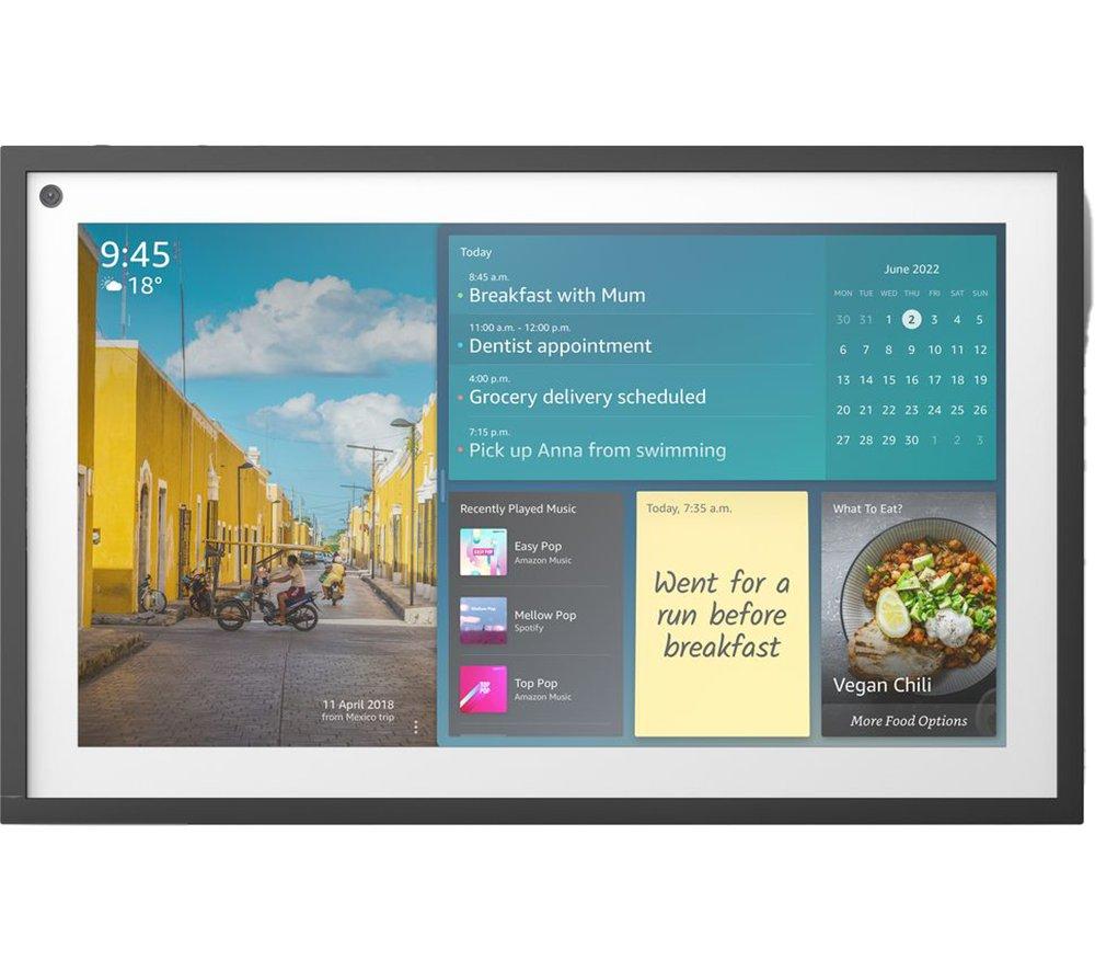 Echo Show is a sous shef, a DJ and a home cinema all in one. Forgot that apple crumble recipe? Just ask Alexa to read it out to you. You could even follow a step-by-step on the 15.6\