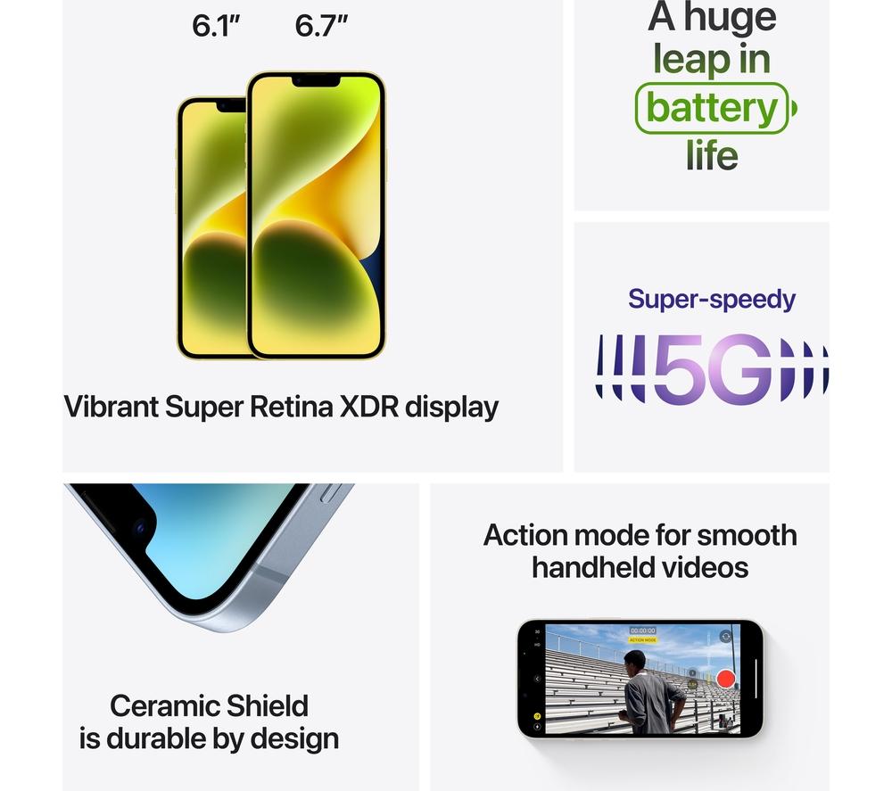 Need to get stuff done? Apple iPhone 14 Plus and its massive screen and battery are here to help. The A15 Bionic chip beating in its chest can run any app or game without breaking a sweat. Everything's a treat to look at on the 6.7\