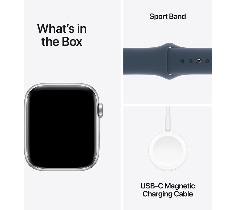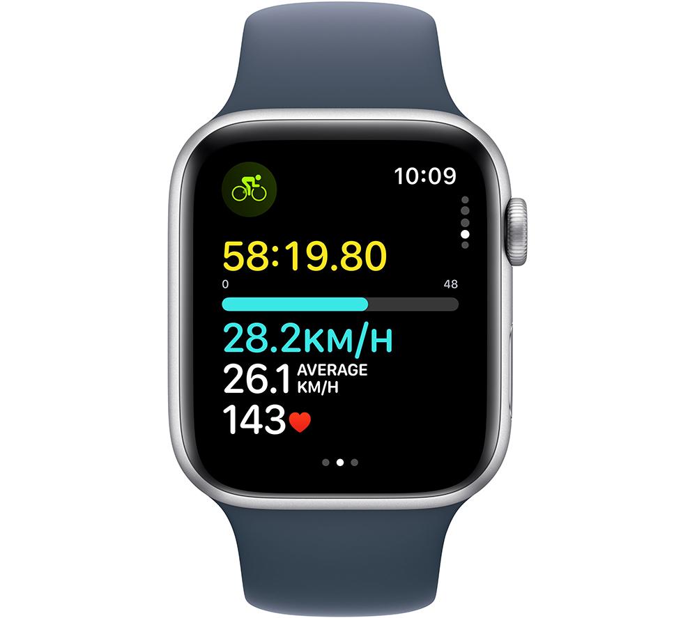 APPLE Watch SE (2023) - 44 mm Silver Aluminium Case with Storm Blue Sport Band, S/M