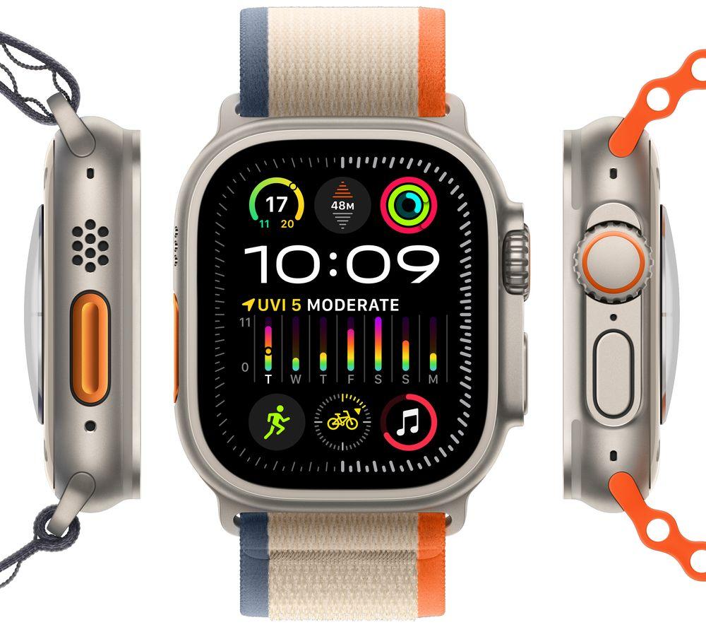 When adventure comes calling, let Apple Watch Ultra 2 be your guide. The Always-On Retina display is Apple's biggest and brightest yet, so you won't have to squint to see it in bright sunshine. Plus Night Mode activates automatically when it gets dark, so you won't strain your eyes. And this baby's tough as well as pretty. The lightweight titanium case is as strong as an ox, so it isn't afraid of a little action. The new silicone S9 SiP is the brains behind the operation. It keeps everything running fast and smoothly. It also helps power the new Double Tap feature. Play music, answer calls, reply to a message and tons more, just by tapping your thumb and index finger twice. Magic! And with an altitude range of -500 to 9000 m, it's ready for anything - from the lowest valleys to the highest peaks.Good to know- WatchOS 10 breathes new life into your favourite apps and squeezes more information on the screen- Activate Siri just by raising your wrist - requests are processed on the device so they're faster, more secure and more accurate- With up to 36 hours of battery life, it's ready for all–day wear - stick it in low-power mode and it jumps to 72 hours- Lost your iPhone? Precision Finding will help you track it down with accurate directions and distance- When you're off the beaten track, precision dual-frequency GPS will help you find your way- Run into trouble? The 86 dB siren can be heard up to 180 m away- It's EN13319 certified so it's at home even underwater - it gives you all the data you need for diving down to 40 m depths- Crash Detection, Fall Detection and Emergency SOS are all built in to help keep you safe