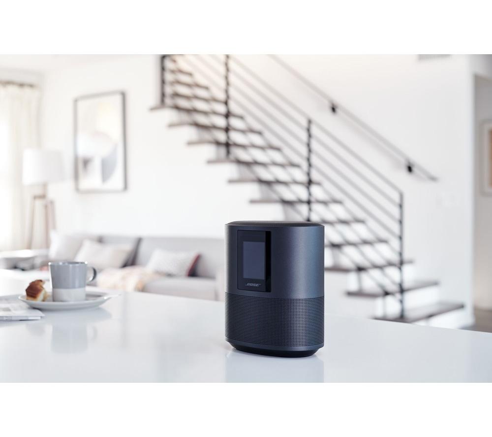 Top features: - Wall-to-wall sound from a single speaker - Google Assistant & Amazon Alexa built-in - Simple control via voice, touch, or app - Modern design to fit with your living space - Create a multi-room setup with other Bose speakers Wall-to-wall soundKick back with your favourite album, turn up the volume on your go-to party playlist, or discover something new from an internet radio station - it all sounds great on the Bose Home Speaker 500.By firing audio in all directions, you get powerful, room-filling sound that'll make you feel like dancing.Google Assistant & Amazon Alexa built-inPlaying your favourite tunes couldn't be easier. The Bose Home Speaker 500 has Google Assistant and Amazon Alexa voice control built-in, so it's as simple as saying \