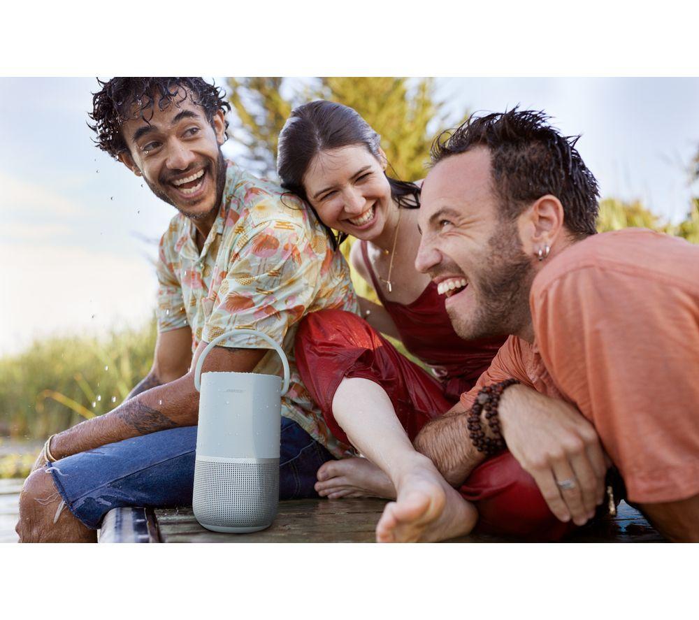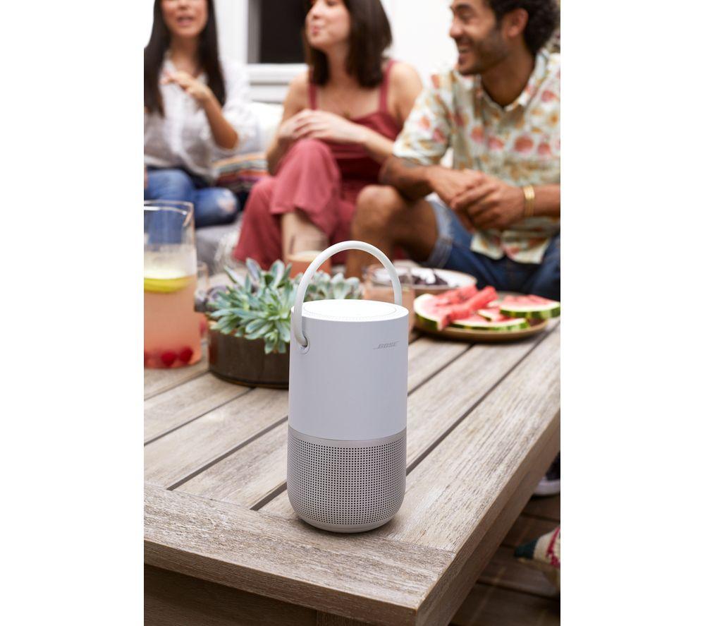 Music, anywhere, everywhereThe Bose Portable Wireless Multi-room Home Smart Speaker is a wireless home speaker, a portable Bluetooth speaker, and a voice-controlled speaker, all in one.360° soundPut the Portable Home Smart Speaker in the middle of the party and everyone will experience the same clear sound. Or to take advantage of the deep bass, place it near a wall to radiate sound all around you.Voice assistantWith Google Assistant and Amazon Alexa built-in, it's never been easier to play music, podcasts, radio stations, and audiobooks. Plus, you can get the weather, send messages, set timers, control your smart home, and much more.Multi-roomGroup speakers to play music in different rooms and control it all on the app. With all your music in one place, streaming is super easy.Durable designBecause it's designed to be taken with you, the Portable Home Smart Speaker has been engineered to withstand bumps, drops, and water splashes.___________________________________Please note: Multi-room and voice control only available over WiFi.