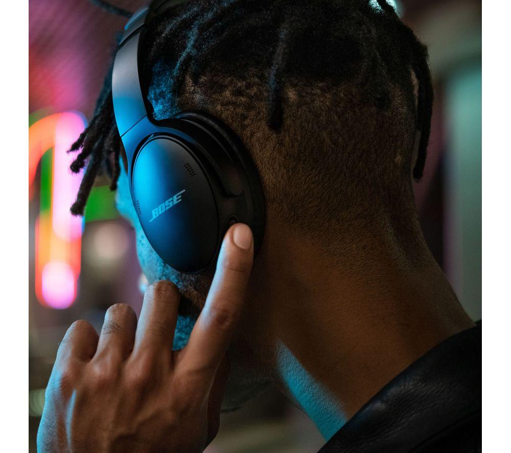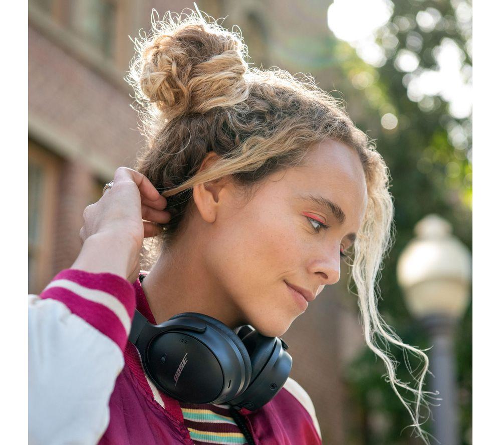 It's no secret that Bose knows noise-cancelling and on the QC SEs it gets even better. There are now six external mics to measure and cancel noise. Perfect for blocking out noisy neighbours while you work from home. There's even a noise-rejecting mic that isolates your voice from environmental sound so you can take calls in noisy surroundings. And when someone needs your attention or you're about to cross the street, simply press the aware mode button - you'll immediately hear everything loud and clear.Good to know- You'll get around three full work days from the 22 hour long battery - so don't stress about charging every day- No battery for the bus home? No worries - a 15 minute quick charge gives you 3 hours of use- Bluetooth 5.1 has great range and is super stable against interference from other devices- To hear your in-flight movie properly, just plug in the included 3.5 mm adapter cable- The volume-optimized Active EQ boosts highs and lows to give great audio quality no matter the volume- Music and podcasts will sound rich and true to life thanks to the TriPort acoustic design- The physical button controls on the earcups are tried, trusted and easy to use- There's a clue in the name... the QC's soft, lightweight materials are designed for all-day comfort- The folding design and included soft case makes them easy to pack away between wfh calls- It's easy to switch between Bluetooth sources, adjust the EQ and more on the free Bose Music app