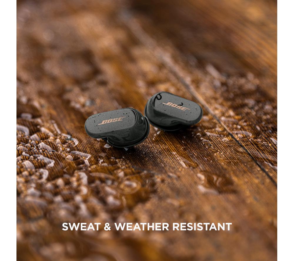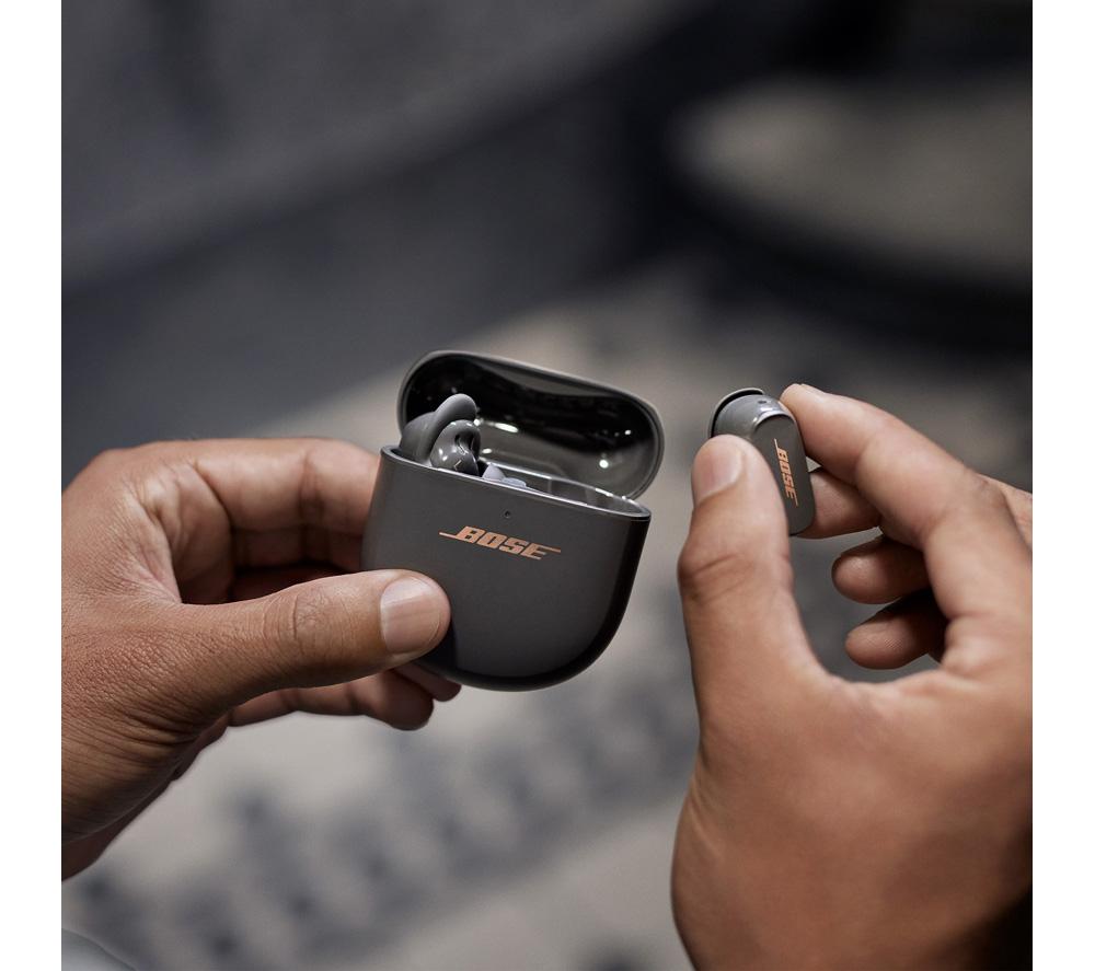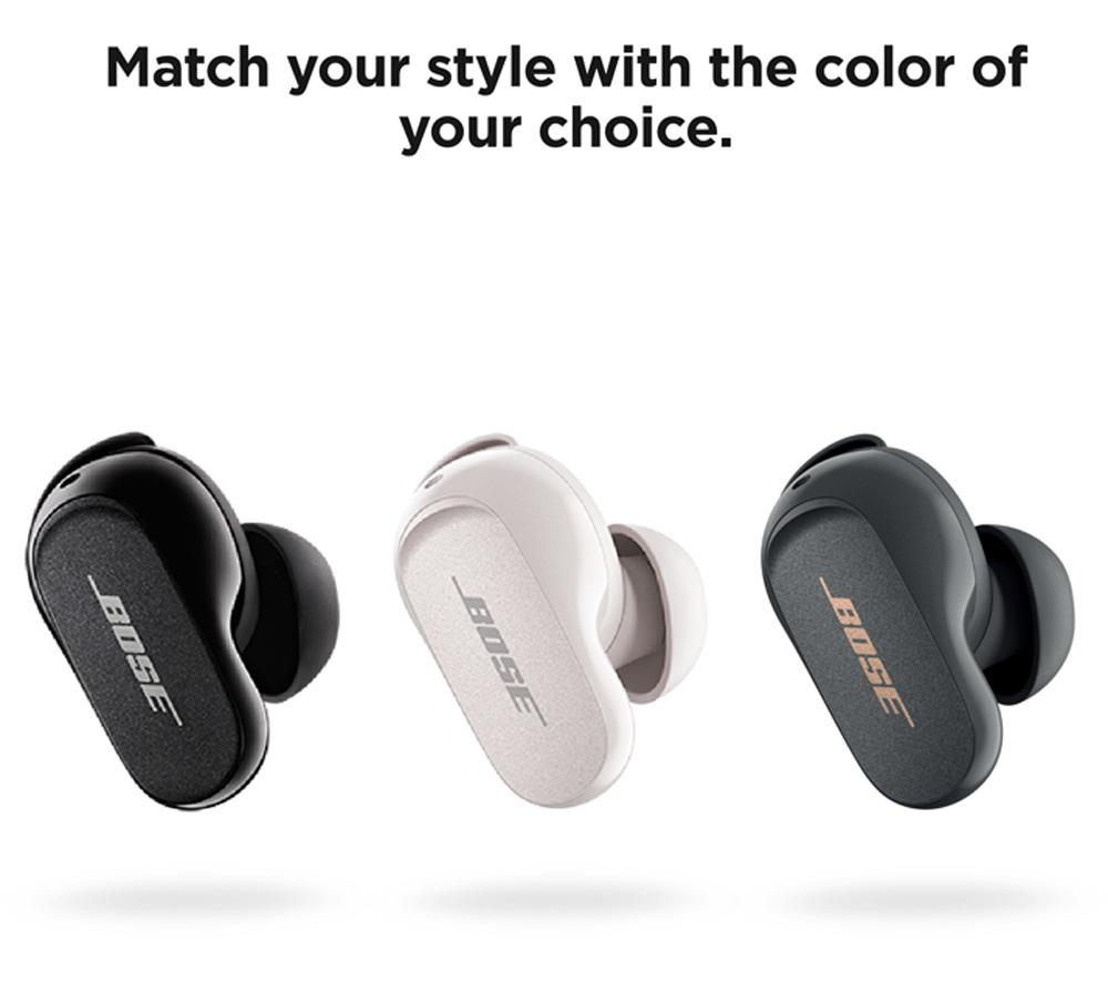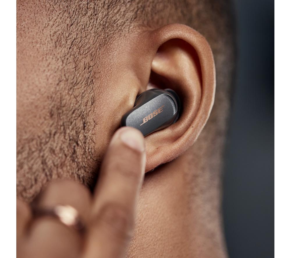 Like a sharp suit, everything is better when it's tailored to you. The Bose QuietComfort II Earbuds use CustomTune sound calibration that tweaks the sound and noise-cancelling to suit the way you listen. And these aren't just any old noise-cancelling earbuds. The QuietComfort II represent a revolutionary advance in noise-cancelling technology. It starts with the perfect fit for a tight seal – and the included Fit Kit makes sure you'll find it. Combined with mics which block out background chatter, you'll be able to appreciate songs in a whole new light – and catch every word of your audiobook. As you'd expect from Bose, there's no compromise when it comes to sound. Each wireless earbud is packed with custom-designed tech that delivers life-like and balanced sound with nuance, clarity, and depth.  Good to know  - You won't need to reach for your phone with simple touch controls for playback, calls, and noise-cancellation - Your music will automatically pause when you remove an earbud, so you can easily have a chat - Aware Mode lets you hear what's going on around you – and you can switch on ActiveSense to soften loud noises, like a passing bus- Noise-rejecting mics pick out your voice from your surroundings, so you'll be heard loud and clear on calls - The buds are water resistant, so you don't have to worry about getting caught in a downpour- You can take one of the earbuds out of your ear and the other one will keep playing – amazing for phone calls - Between listens, pop the earphones back in the case for up to 24 hours of listening time
