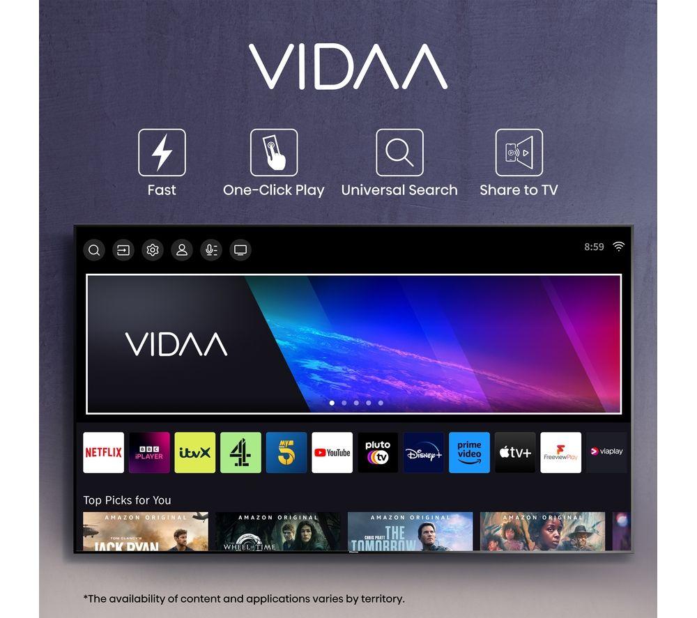 • Smart tv services :- Catch up TV: BBC iPlayer, ITVX, My5, UKTV- Streaming: Amazon Prime Video, Apple TV, Disney+, Netflix, NOW TV, YouTube- Music: Deezer- App store: VIDAA StorePlease note: Some services are only available in the UK