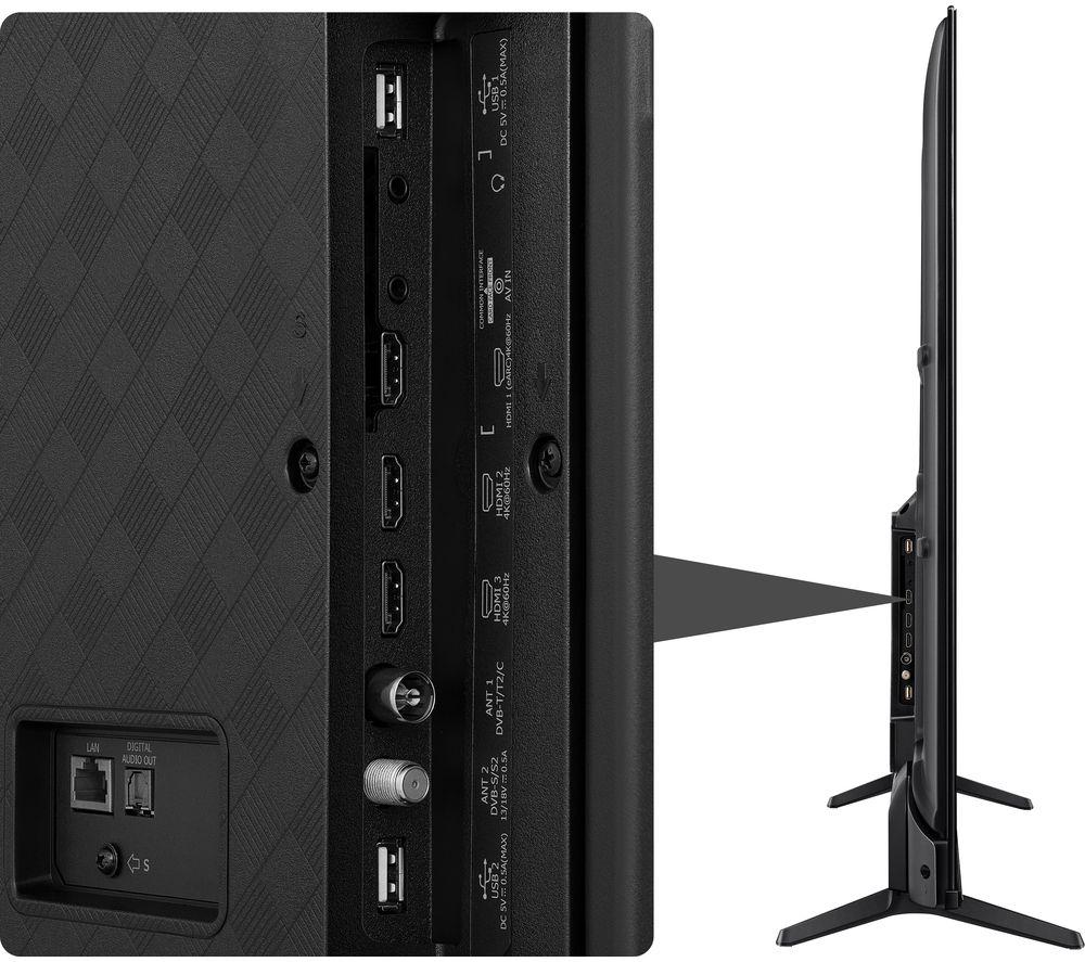 • Connections :- HDMI 2.0 x 3 (eARC x 1)- Composite input x 1- USB 2.0 x 2