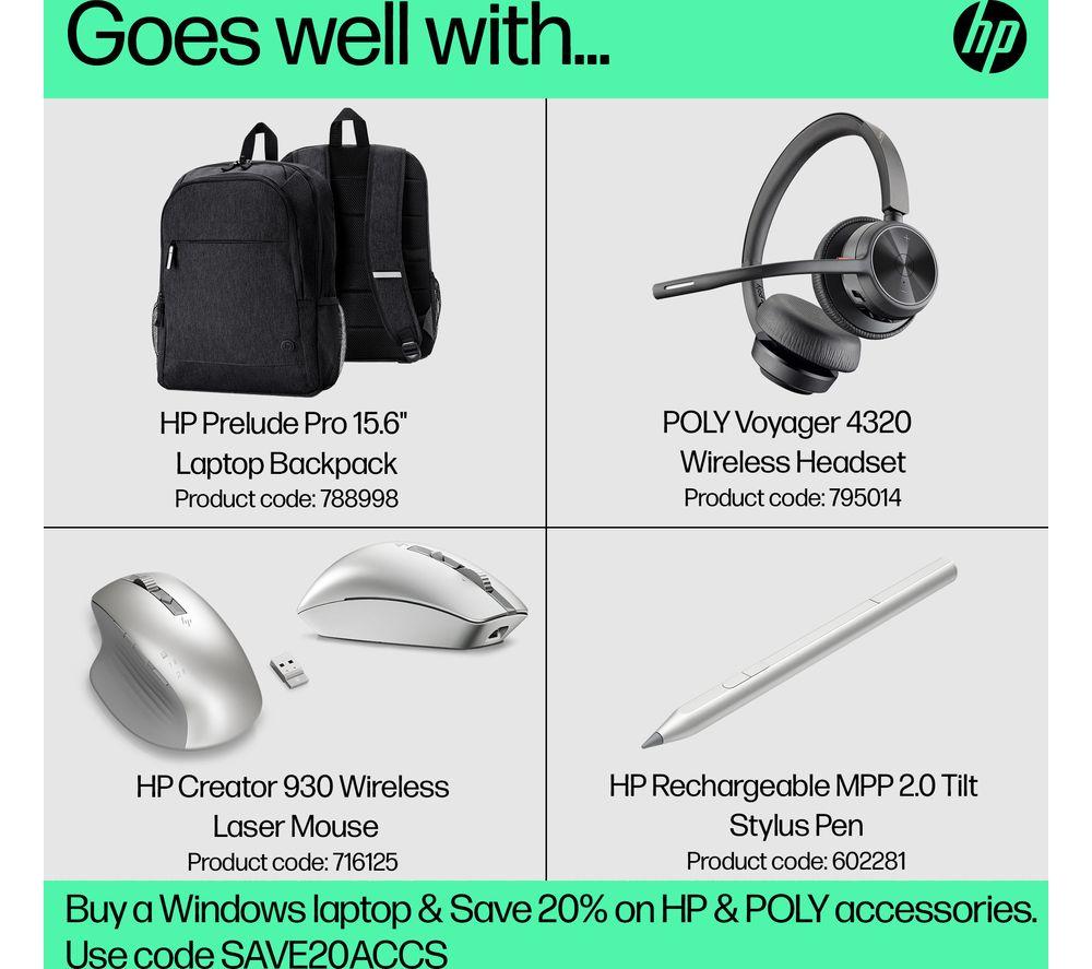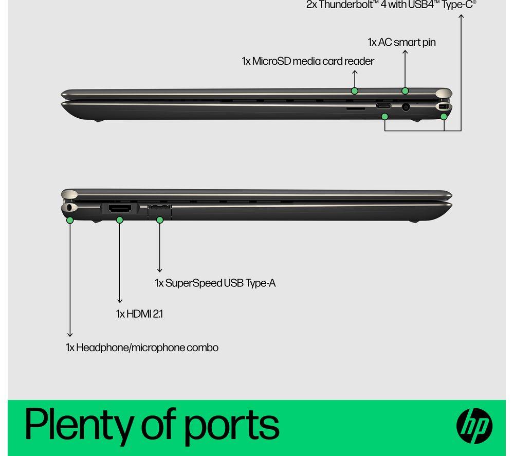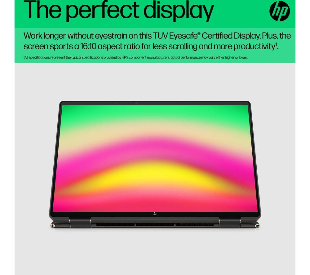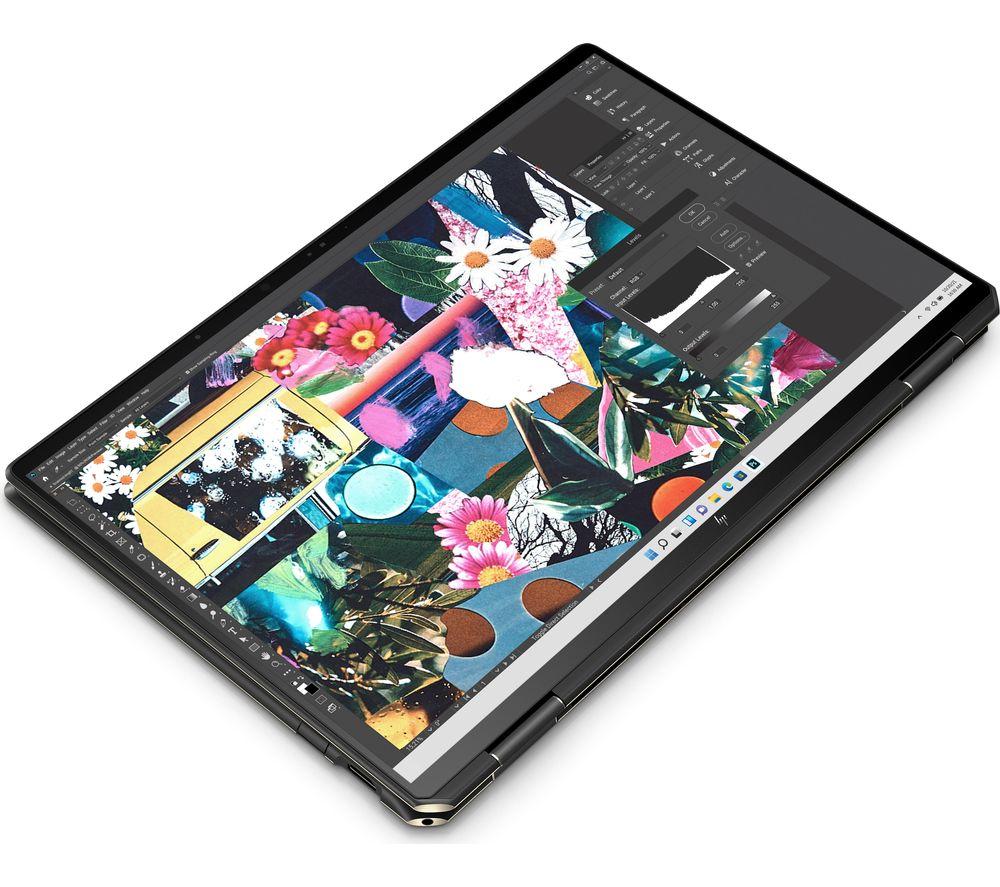 This one's a proper high-end laptop. Packing Intel® Arc graphics, 13th Gen Intel® Core i7 processor and 16 GB of RAM, it's ready for heavy multitasking, video editing or 3D modelling. Then there's the display, a real jewel. The 4K OLED touchscreen boasts amazing detail and accurate colours – it's great even for professional creative work. Got an important work call? HP GlamCam with automatic face tracking will make you shine.Good to know- The 360° hinge lets you turn the laptop into a super-charged tablet- With a 1 TB SSD, it's got plenty of space for all your photos, apps and work- The 2 Thunderbolt 4 ports let you hook up hi-res monitors, external SSDs, and charge the laptop, too- Over 10 hours of battery life means you can go through the day without a charger- The Intel® Evo platform brings together premium technologies for an exceptional performance- It's made using sustainable materials, including ocean-bound plastic and recycled aluminium__________________________________________________________________________Arc, Arria, Celeron, Cyclone, eASIC, Intel Ethernet, Intel,the Intel logo, Intel Agilex, Intel Atom, Intel Core, Intel Evo, Intel Inside, the Intel Inside logo, Intel Optane, Intel vPro, Iris, Killer, MAX, Movidius, Pentium, Intel Select Solutions, Intel Si Photonics, Stratix, the Stratix logo, Tofino, Ultrabook, Xeon are trademarks of Intel Corporation or its subsidiaries.