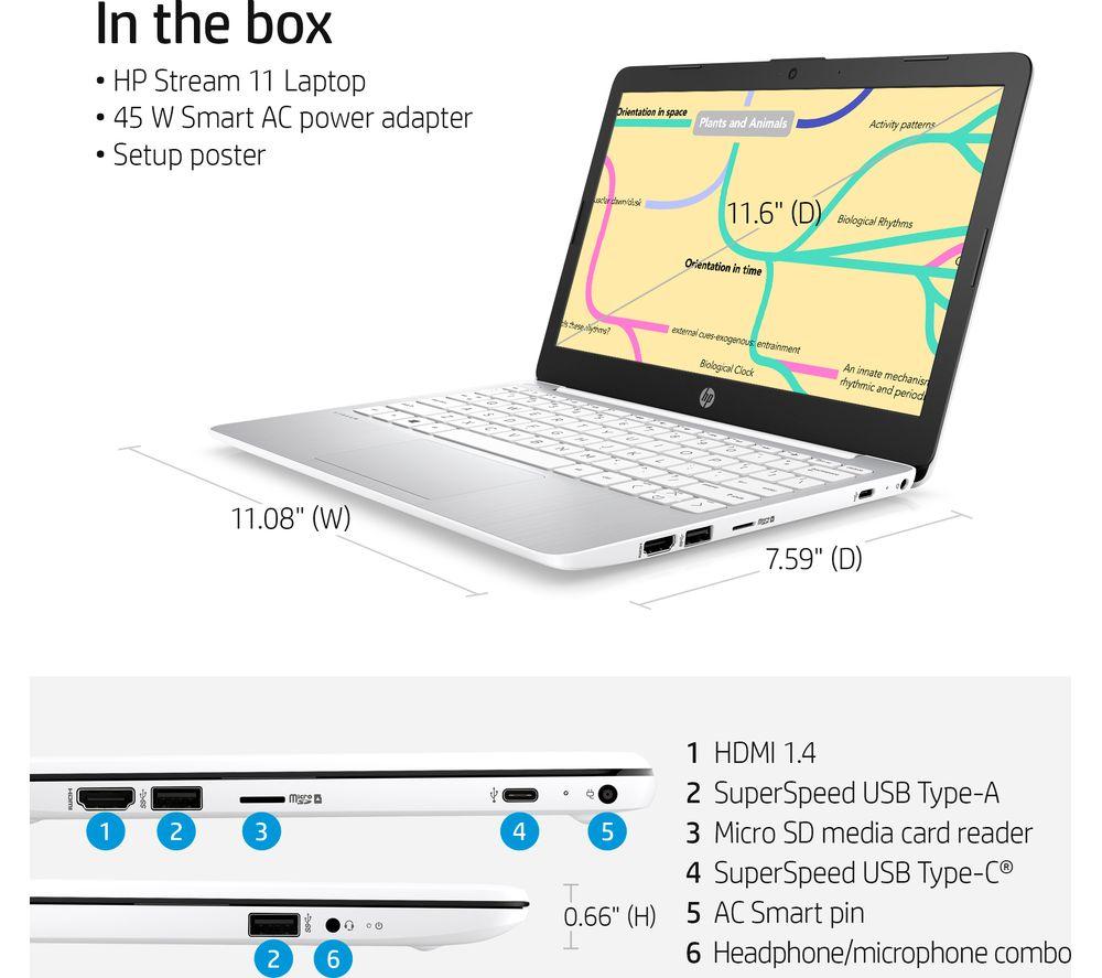 Good to know- Powered by an Intel® Celeron® processor this laptop is able to handle your everyday routine from ordering groceries online, to writing emails or chatting with friends- Thanks to its lightweight and portable design, you can take it anywhere and work in a café or do research in the library- It has all the ports you need for everyday use - USB-C for fast-charging your smartphone or tablet, USB ports for your mouse and keyboard and HDMI if you want to stream Netflix on a non-smart TVPlease note: This PC includes Office 365 Personal for a year. All you have to do is activate it within six months of setting up your laptop. Easy.Specific timing for Windows 11 release will vary by device and certain features require specific hardware. Please see Microsoft website for details.___________________________________________________________Intel, the Intel logo, Celeron, Intel Atom, Intel Core, Intel. Experience What's Inside, Intel Inside, the Intel Inside logo, Intel Unite, Iris, Pentium, Thunderbolt, the Thunderbolt logo, and Ultrabook are trademarks of Intel Corporation in the U.S. and/or other countries.