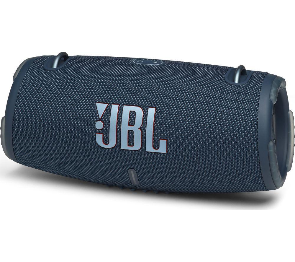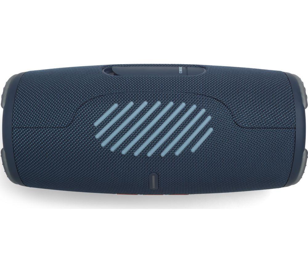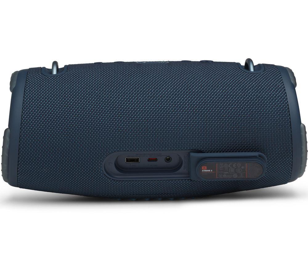 Listen all day Bring a party-proof music setup wherever you go with the JBL Xtreme 3 Portable Bluetooth Speaker. This new generation features even more power, updated Bluetooth and lighter weight while offering better protection at the same time. With a battery that can last up to 15 hours on a single charge, the JBL Xtreme 3 is ideal for days in the park, festivals and adventures. Passive bass radiators can be seen on both sides of the unit, so you're able to hear the percussion and bassline exactly as the producer intended, even outdoors. And if you're out for the whole day, the USB port makes a handy charging station for your phone or tablet. Keep the music going without worrying about drained devices. Pair two devices Sometimes it's nice to sit back and discover what your friends have been listening to. The JBL Xtreme 3 lets you do just that with Bluetooth 5.1 connectivity. You're able to connect two phones at the same time, so you can either take a break at the controls or take turns supplying the tunes with a friend. Connect over 100 speakers Amplify your Xtreme 3 listening experience thanks to the JBL PartyBoost app. As well as simplifying the setup process, it's great for adding speakers to your party and making the sound that much more immersive. With the ability to add over 100 speakers, you'll never find the sound falling flat. Take your speaker to the pool Whether you're at the beach, by the pool or exploring, you don't need to worry about shielding your JBL Xtreme 3 Portable Bluetooth Speaker from the elements. An IP67 rating means that your speaker will sound glorious even if it gets dropped in water a metre deep. So, splashes and spills will never rain on your parade.