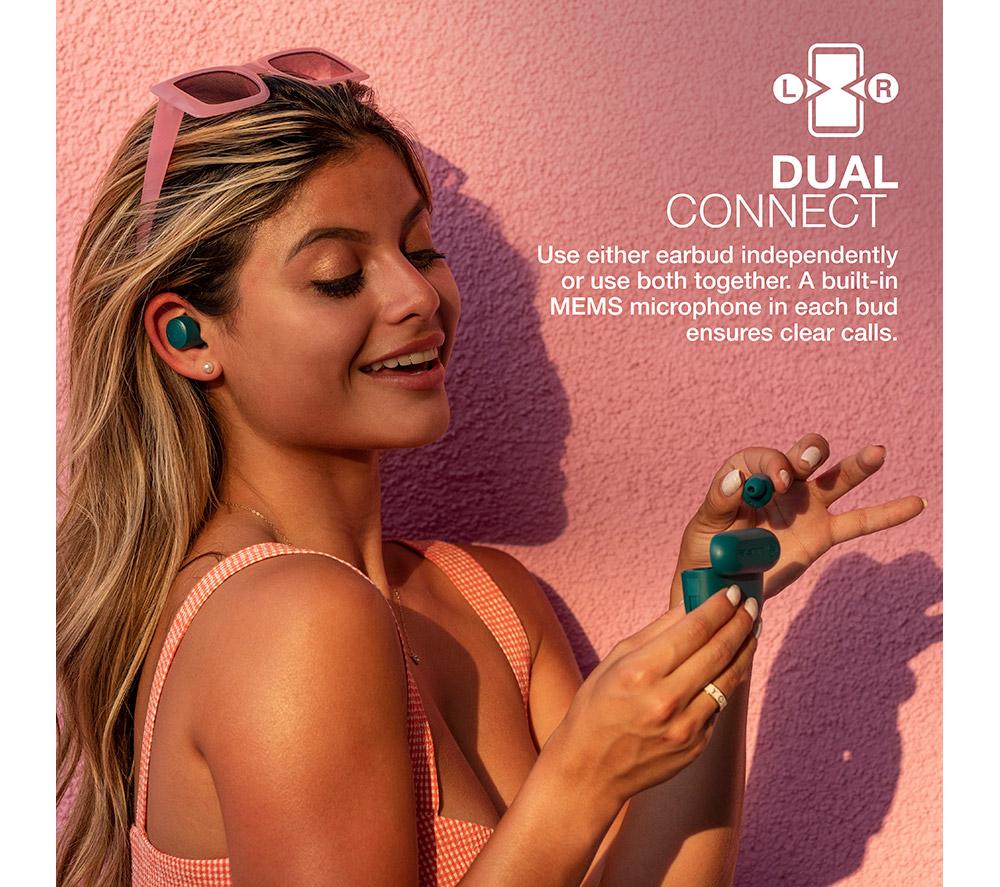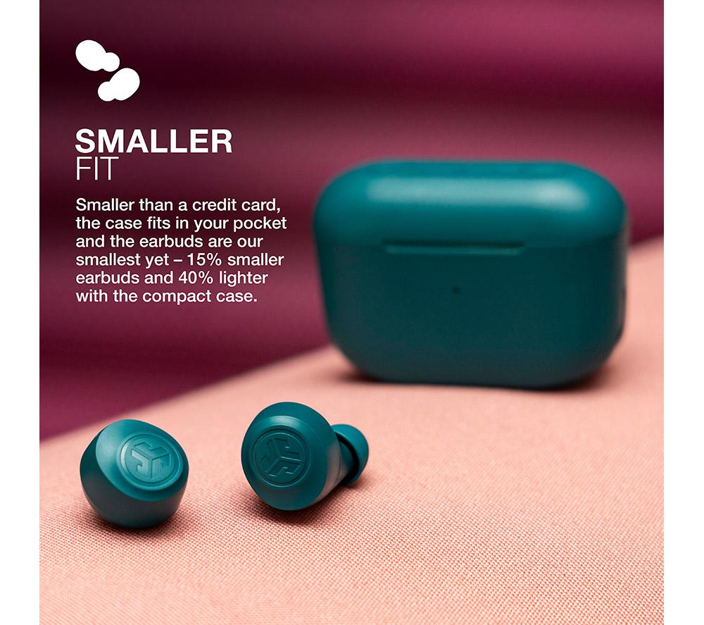 Good to know - With these JLAB wireless earbuds you can enjoy your music for up to 32 hours - 8 from the buds and 24 from the case - The charging case is tiny, lightweight and has a built-in USB cable, so it'll all fit nicely in your pocket - By tapping the earbuds you can cycle through 3 EQ modes to suit your playlist - no app necessary - The touch controls let you change volume, control music or calls, and summon your voice assistant - Thanks to the IPX4 rating you can be sure that the earbuds will survive a rainy day or a sweaty gym session - You can use just one earbud and leave the other one in the case - handy for phone calls