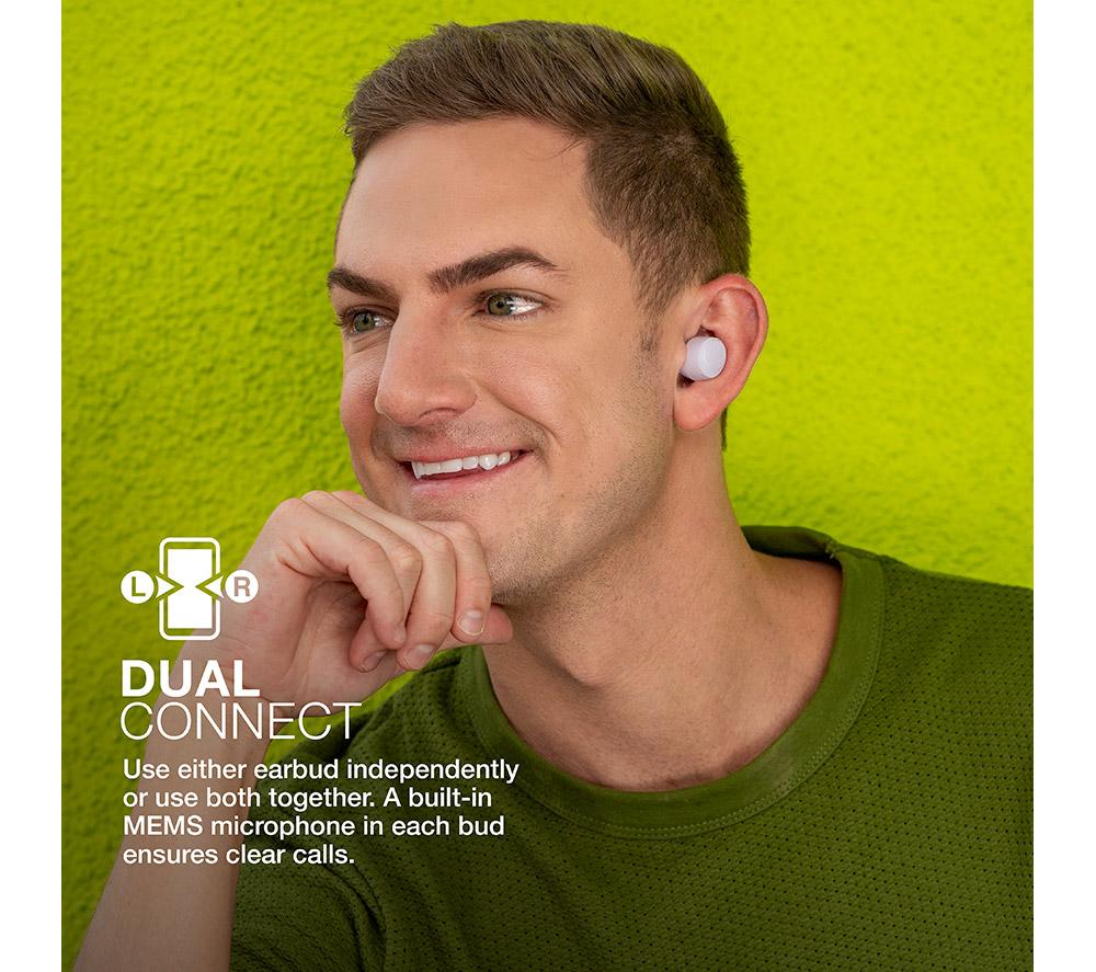 What we love - With these wireless earbuds you can enjoy your music for up to 32 hours without looking for a charger – the earbuds hold 8 hours of charge, and the case gives you an additional 24 hours - The charging case is tiny and lightweight, so it will disappear into your pocket until you need it – there is also a USB cable built into it for charging - By tapping the earbuds you can cycle through 3 EQ modes to suit your fancy – no app necessary Good to know - The touch controls let you change volume, control music or calls, and summon your voice assistant - Thanks to the IPX4 rating you can be sure that the earbuds will survive a rainy day or a sweaty gym session - You can use just one earbud and leave the other one in the case - handy for phone calls