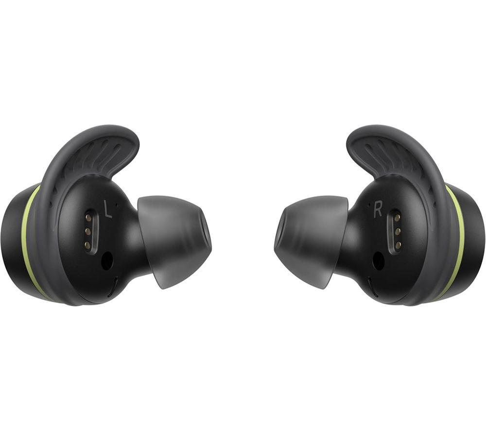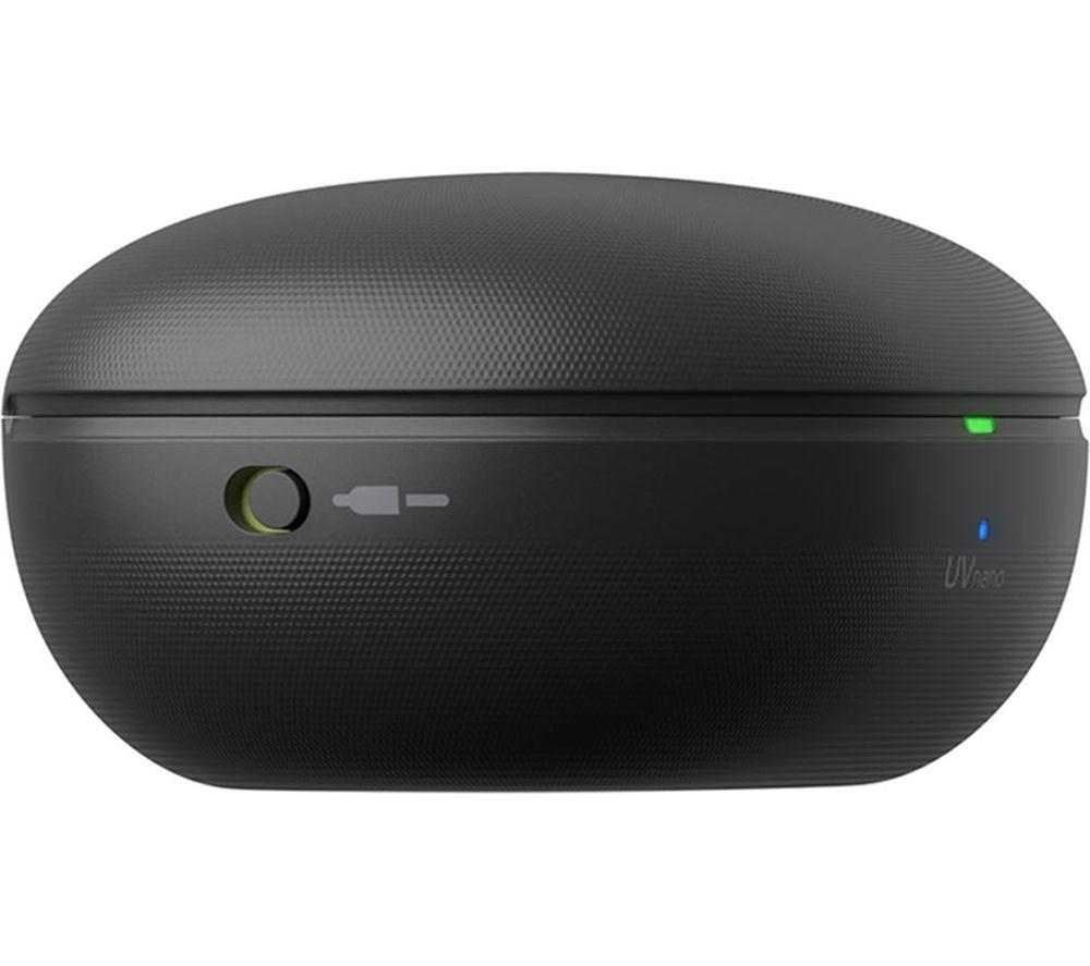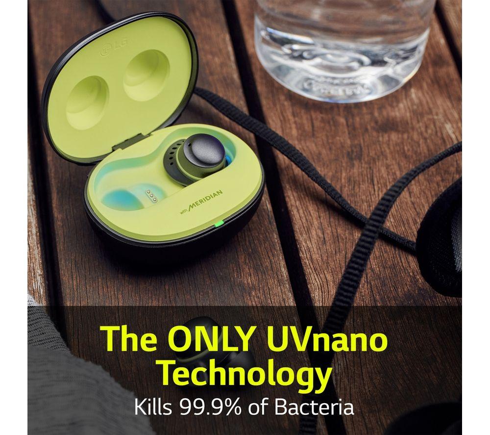 Focus on your exercise, not your earbuds. The LG Tone Free UTF8 earbuds are made to stay put with a swivel hook to lock them in place with hardly any pressure. They're also designed to circulate air to keep your ears comfortable and cool. The waterproof (IP67 rated) design means you can give them a quick rinse after workouts. And to make sure they're extra fresh, the UVnano charging case uses UV light to reduce bacteria up to 99.9% in just 10 minutes. Active Noise-cancelling helps you focus on your music by reducing background noise. You can switch between listening mode to stay aware of your environment or conversation mode to chat with your running buddy.Good to know- Meridian and Headphone Space Processing (HSP) technology offer Hi-Fi sound with a realistic sense of space- No Bluetooth? No problem – the Plug&Wireless charging case doubles as a transmitter, so you can use a headphone or USB port- Quickly switch between devices without having to reconnect thanks to Multi-point and Multi-pairing___________________________________________________Please note: The charging case is not waterproof, earbuds must be dried completely before inserting back into case.