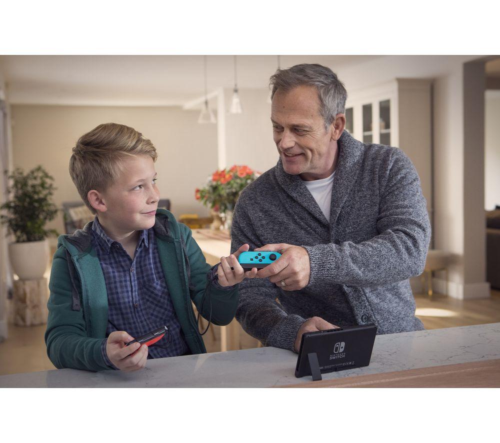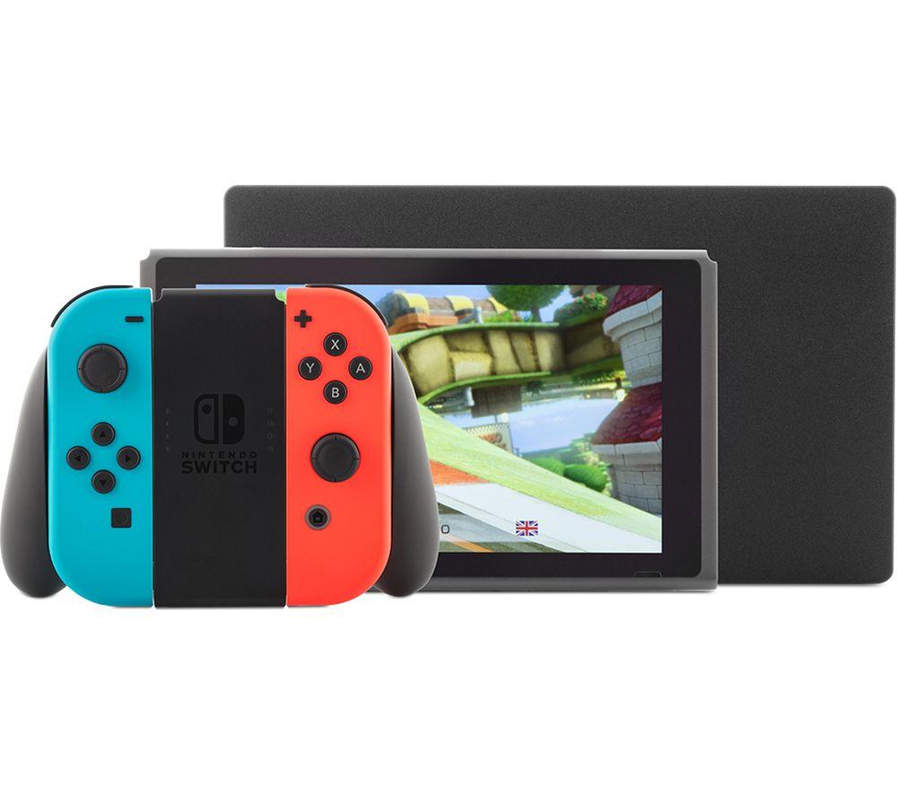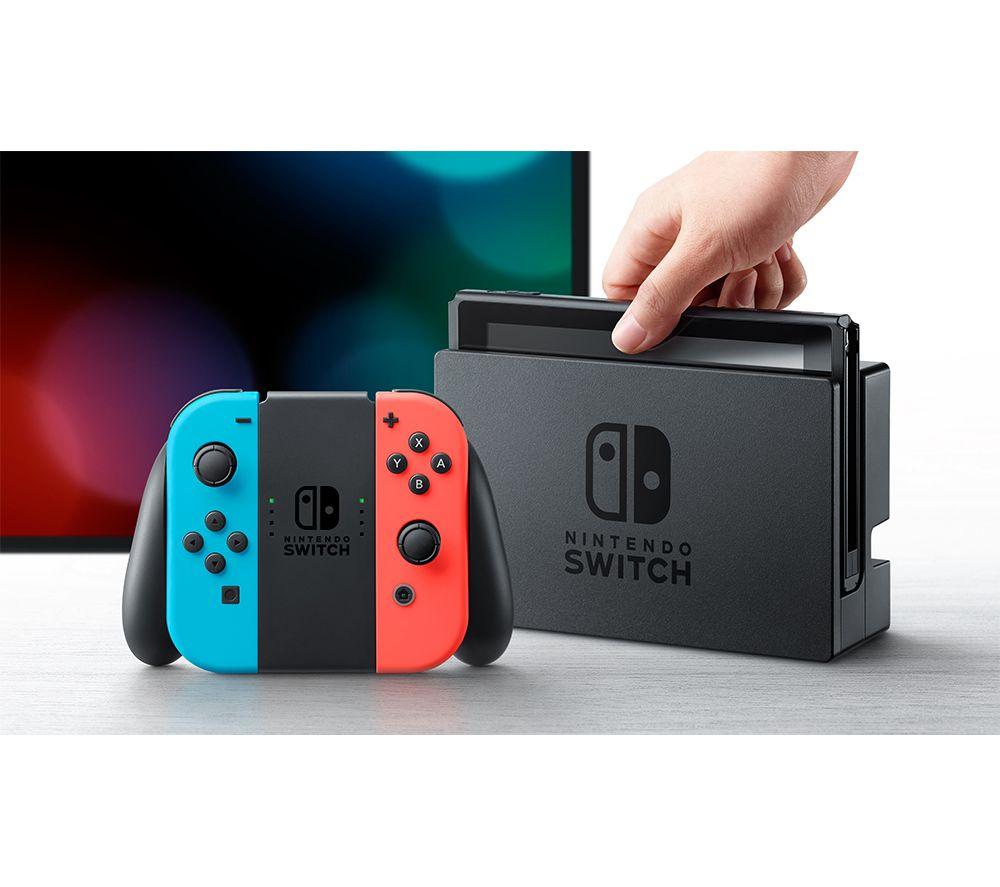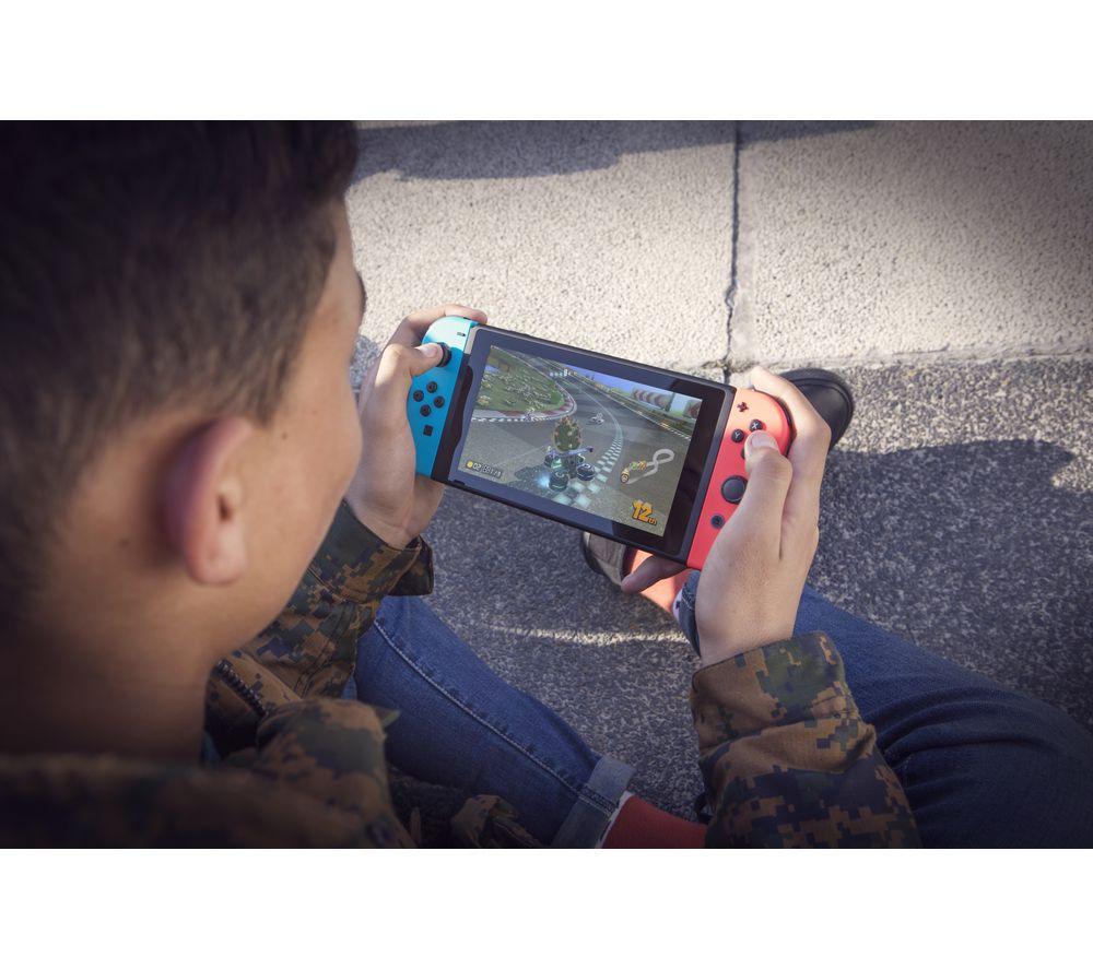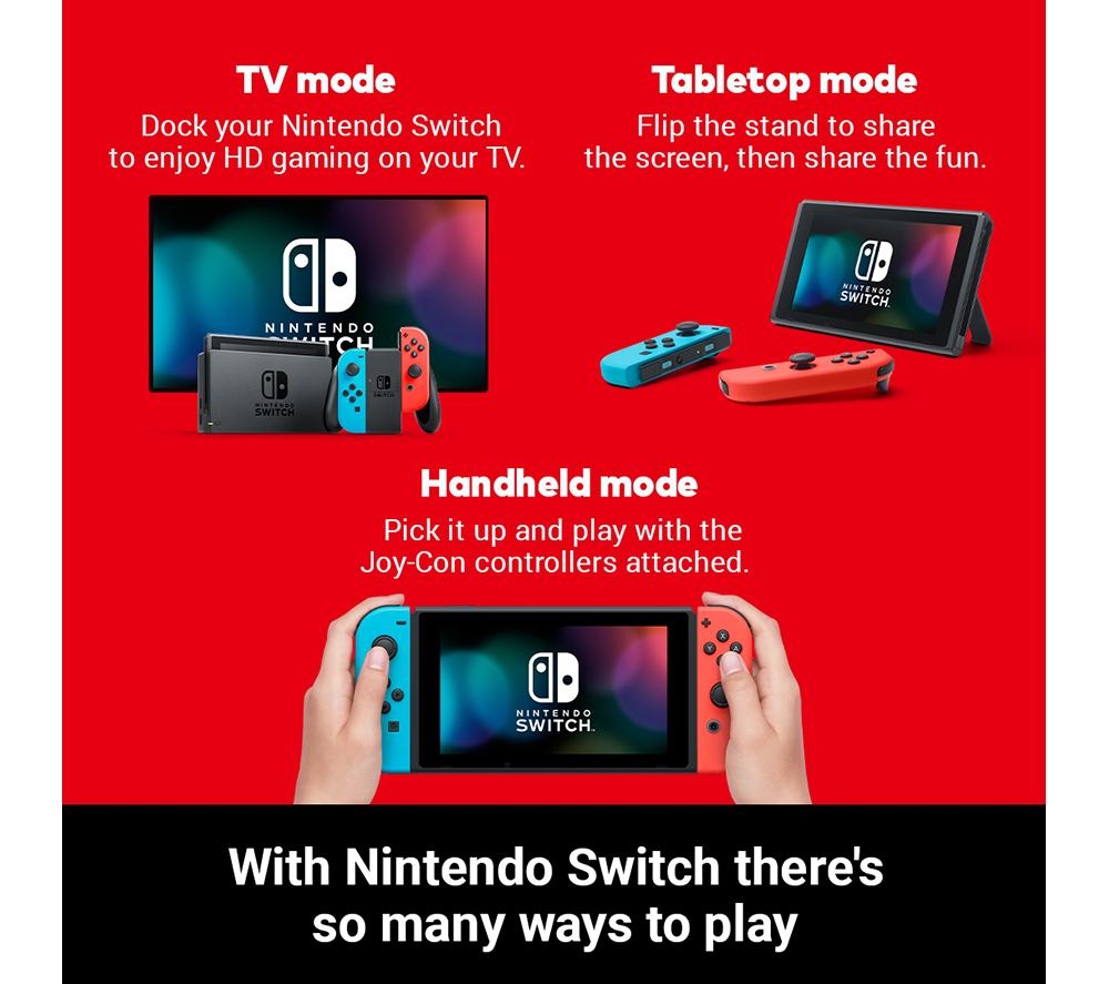 All your Nintendo friends are on the Switch. Fancy games with Mario and Luigi, Link and Zelda or Pikachu and the other Pokémon? You can find all of them and many more exclusively on Switch. And you can take them with you anywhere you go! Nintendo Switch is a hybrid console - you can either hook it to your TV, or go handheld and play on its 6.2” screen. That means you can game any way you like, whether it's a lazy afternoon with the family or a commute to school or work.Good to know - Stuck on a long journey? That's more gaming time for you, the battery lasts from 4.5 up to 9 hours, depending on your game - It comes with two wireless Joy-Con controllers - each has a full set of buttons, so you're set for multiplayer right out of the box- Gaming on a TV is super easy – just pop the Switch in the included HDMI dock and you're off - There are 32 GB of internal memory for your games and save files, and you can easily expand with a microSD card