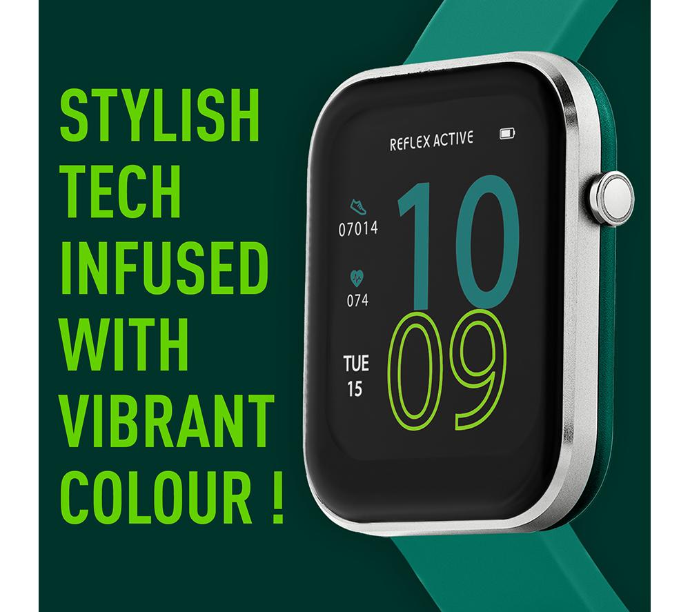 REFLEX ACTIVE Series 12 Smart Watch - Silver & Teal, Silicone Strap