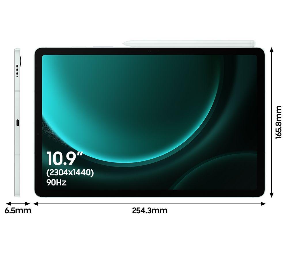 The Galaxy Tab S9 FE's got a screen to behold. The 2K display has a 90 Hz refresh rate, so the image isn't just super-sharp, but nice and smooth, too. So whether you're reading, binging or gaming, you'll have a great time. Or whip out the mighty S Pen and turn the Galaxy Tab into a notepad, sketchbook or a canvas. It's up to you and your creativity. The Exynos 1380 processor's got plenty of power, so it won't be holding you back. Good to know - From video calls to Insta-worthy selfies – the 8 MP rear camera and a 12 MP selfie camera will always make you look sharp - It's IP68 water-resistant, so getting caught in a rain shower doesn't have to bother you - AKG tuned dual speakers pump out full and punchy sound to match the screens visuals - You'll have plenty of space for your files and photos with 256 GB of storage - Super Fast Charging means you can quickly top-up the battery level between uses (45W Super Fast charger sold separately) - It supports WiFi 6 connection for super-fast and rock-steady internet - A fingerprint scanner keeps the tablet secure and for your eyes only