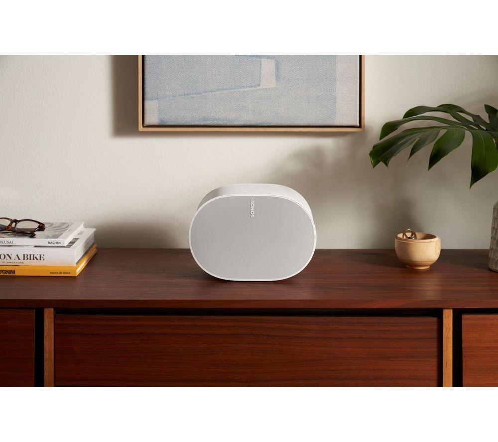 Life comes at you from all directions, so shouldn't your music do the same? The Sonos Era 300's six speakers support Dolby Atmos Music, so you get an epic 3-dimensional experience wherever you are in the room. It projects sound in every direction using clever custom waveguides, so every inch of your space will be a listening sweet spot. Download the Sonos app and things get really clever. TruePlay tuning technology analyses the acoustics of your room and then tweaks the EQ of the speaker, so your tunes sound at their best. It's like having your own sound guy in the house.Good to know- With WiFi and Bluetooth, you can easily stream from any of your devices with no ugly cables in sight- Pair it with additional Sonos speakers (sold separately) for a wider stereo sound, or create your own surround sound system for movie night- There's loads of free music, original content and live stations on Sonos Radio- With Sonos Voice Control and Amazon Alexa built in, you can control the speaker using just your voice – handy when you're cooking- Feeling old-school? Plug in your turntable using an aux cable and Sonos line-in adapter (both sold separately) and jam to your favourite vinyl- It's made from 40% recycled materials, so it helps to reduce plastic waste