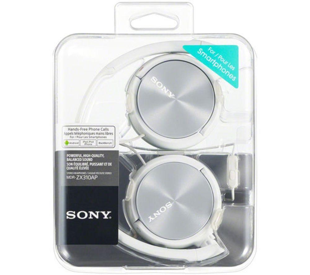 It's time to rock and roll with the white Sony MDR-ZX310APW.CE7 Headphones, a premium audio device that's perfect for DJ use or just enjoying any music in high quality.Stunning soundEquipped with a pair of 30 mm dome-type drivers, these Sony DJ headphones are able to deliver amazing, sense-engorging audio that will augment your favourite tunes, whether you're into rock, pop, folk or house.The MDR-ZX310APW Headphones render every sound in optimum clarity, with a broad frequency range extending from a floor-shaking 10 Hz to a scintillating 24,000 Hz.Strong and easy to wearFitted with a fully adjustable headband, Sony MDR-ZX310APW.CE7 Headphones offers reliable durability that will see them go the distance. Even if you listen for hours, they stay comfortable and provide a great fit.The headphones are foldable for convenient packing and travelling. They feature swivelling earcups that make them easier to wear around your neck – perfect for DJ use or for when you need to stop the tunes to have a conversation in the studio.Built-in controlsThese Sony MDR-ZX310APW.CE7 Headphones are great for playing and managing tracks from your smartphone, and are compatible with most models including iPhones and Android devices.Answer and conduct clear, personal phone calls using the in-line microphone, and change tracks using the remote control. It makes for a far more convenient way to enjoy music and chat on the go, keeping your hands free.Listen, talk and experience with Sony MDR-ZX310APW.CE7 Headphones in white.
