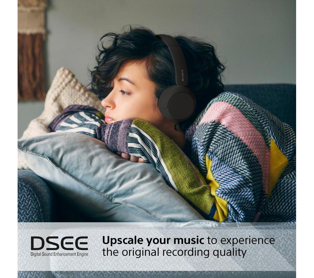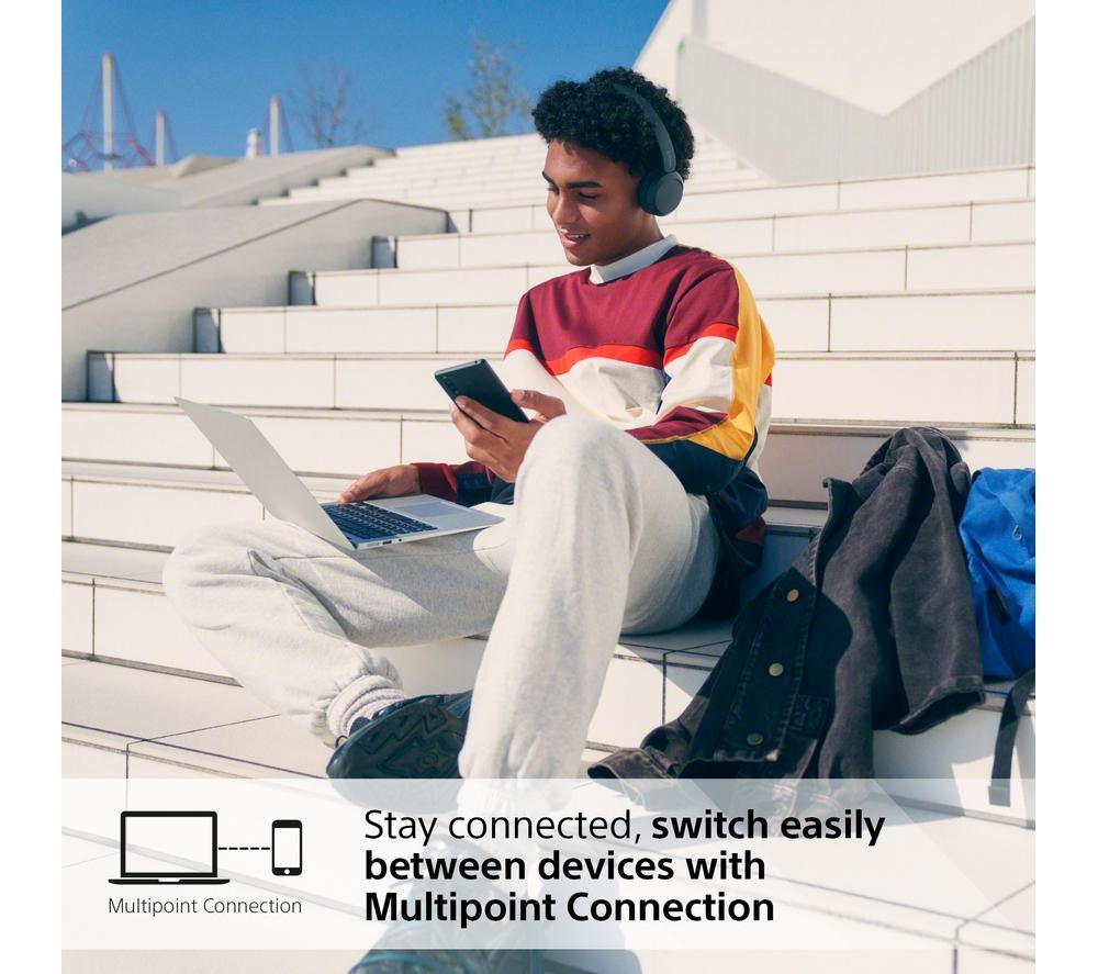 There's nothing quite like losing yourself in your favourite tunes. The Digital Sound Enhancement Engine on these Sony headphones restores the harmonics that are lost during music compression, so your tunes sound more authentic. Plus, with active noise cancellation, you can block out all those annoying background noises and hear every note clearly. And with Multi-Point Connection, you can seamlessly switch between 2 Bluetooth devices – go from watching a movie on your tablet to taking a call on your phone. Simple!Good to know- The adjustable headband and soft earcups are super comfy so you can rock out all day- You can answer a call simply by clicking the button on the earcup – you won't even have to take your phone out of your pocket- The high-quality built-in microphone and noise suppression tech means you'll be heard loud and clear on calls, even in loud environments- You get 1.5 hours of battery from just 3 minutes of charge – perfect when you need a quick top up before setting out- Fully charged, you get a whopping 50 hours of listening time
