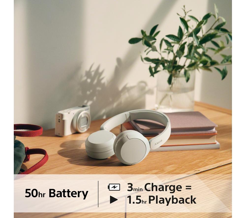 There's nothing quite like losing yourself in your favourite tunes. The Digital Sound Enhancement Engine on these Sony headphones restores the harmonics that are lost during music compression, so your tunes sound more authentic. Plus, with active noise cancellation, you can block out all those annoying background noises and hear every note clearly. And with Multi-Point Connection, you can seamlessly switch between 2 Bluetooth devices – go from watching a movie on your tablet to taking a call on your phone. Simple!Good to know- The adjustable headband and soft earcups are super comfy so you can rock out all day- You can answer a call simply by clicking the button on the earcup – you won't even have to take your phone out of your pocket- The high-quality built-in microphone and noise suppression tech means you'll be heard loud and clear on calls, even in loud environments- You get 1.5 hours of battery from just 3 minutes of charge – perfect when you need a quick top up before setting out- Fully charged, you get a whopping 50 hours of listening time