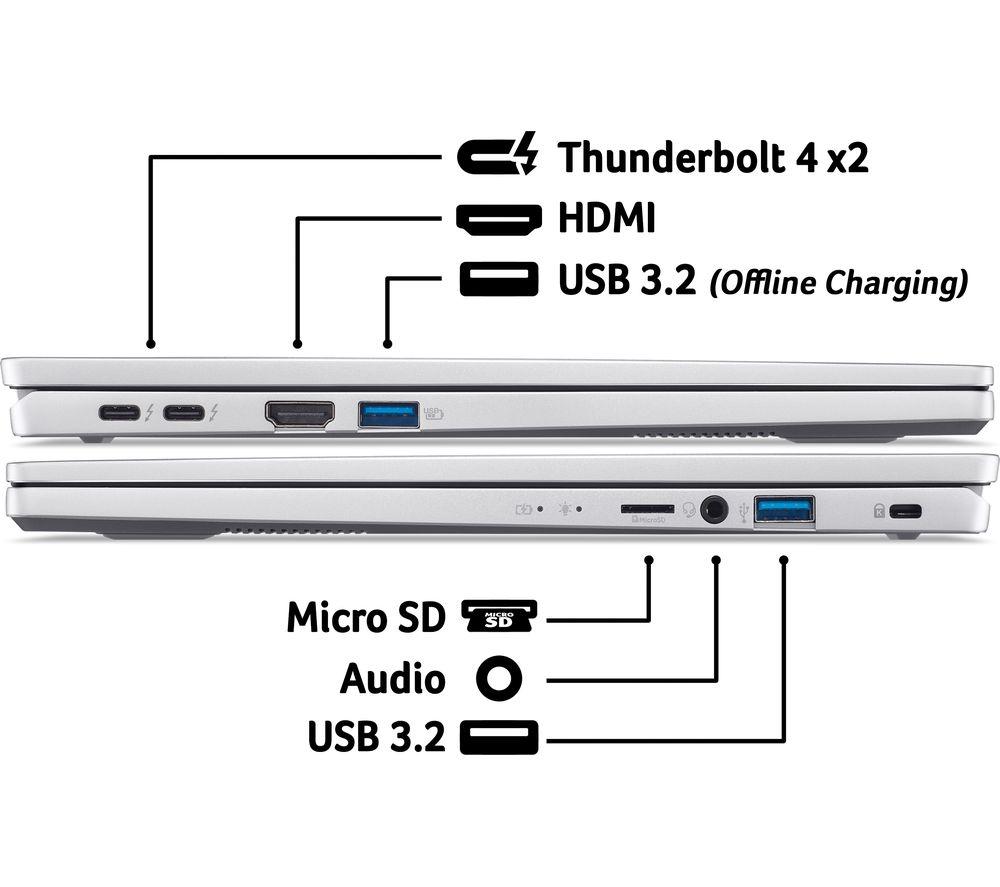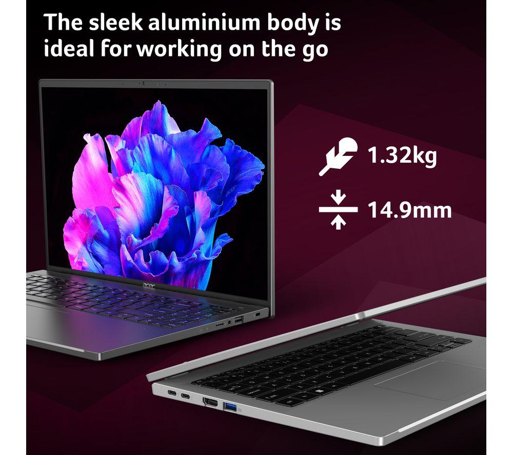 Lugging around a heavy laptop can really make your shoulders ache. Luckily, the Acer Swift Go only weighs 1.32 kg, so you'll barely notice it in your bag. The 14” touchscreen is perfect for creative work and catching up on Netflix. And it's a real powerhouse, too. The 13th Gen Intel® Core i5 processor's got enough performance to handle all your apps without a hiccup. And there's plenty of ports, including Thunderbolt 4 and HDMI 2.1, so you can connect virtually anything – from super-fast SSDs to 8K monitors.Good to know- The Quad HD webcam will make you look great on work calls and catchups with friends- With up to 11.5 hours of battery life, you can leave the charger at home- Browse, stream and download faster than ever before thanks to WiFi 6E- No more typing out passwords – the fingerprint reader is much more convenient___________________________________________________________________________Intel, the Intel logo, Celeron, Intel Atom, Intel Core, Intel. Experience What's Inside, Intel Inside, the Intel Inside logo, Intel Unite, Iris, Pentium, Thunderbolt, the Thunderbolt logo, and Ultrabook are trademarks of Intel Corporation in the U.S. and/or other countries.