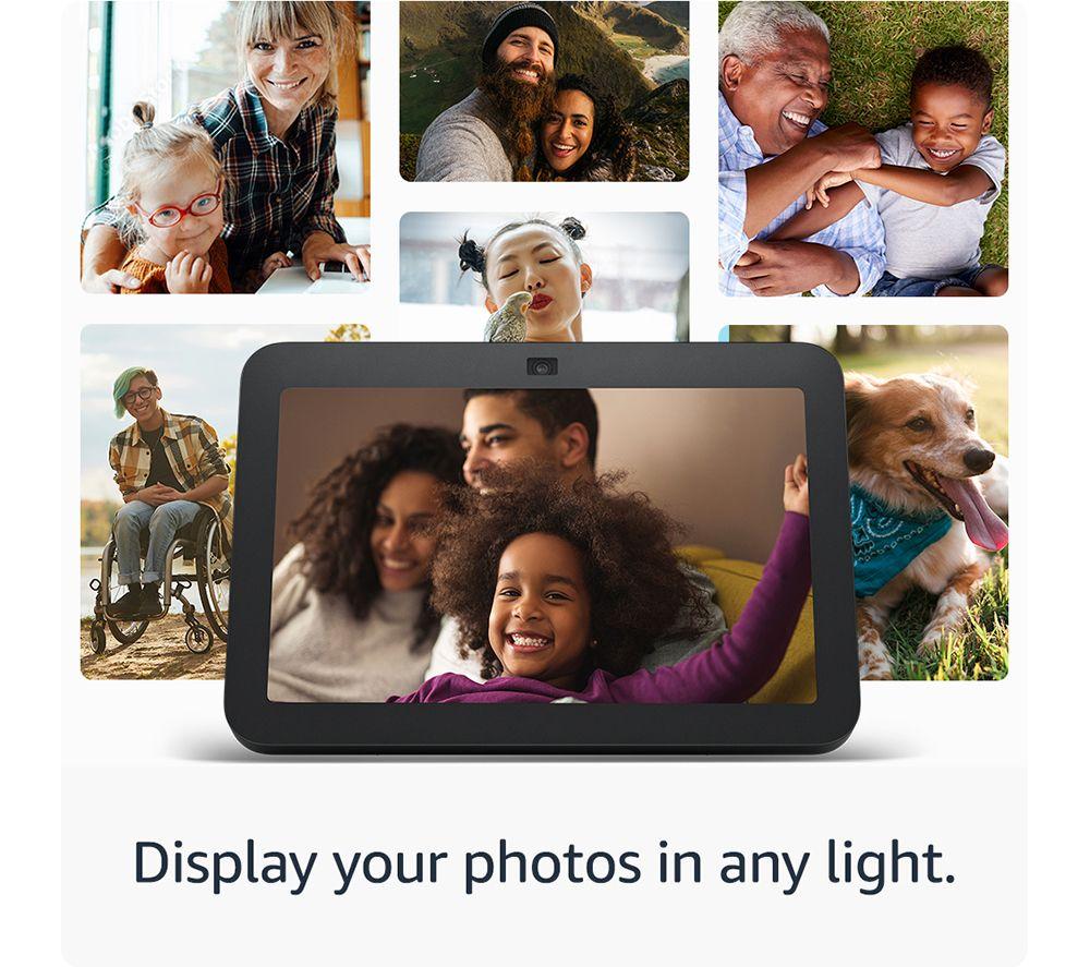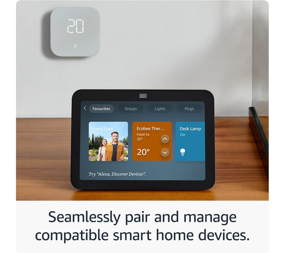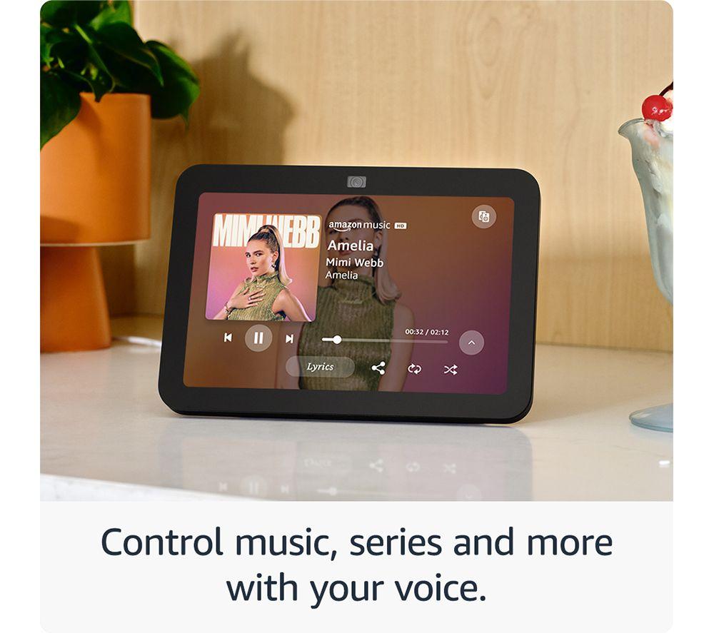The Echo Show 8 is your everything hub. Want to watch a cooking show, dim your Hue lights, or top up your shopping list? It does all that and more. This 3rd gen speaker has a had a nice upgrade with spatial audio. It cleverly fine-tunes the acoustics to suit your space, so you get the best room-filling sound. It's the perfect excuse to catch up on a Netflix or Prime series on the 8” HD screen while prepping dinner. The Echo doubles as a hub for all your connected gadgets too. Even third-party stuff, as long as it's got Zigbee, Matter or Thread. You'll be able to answer your doorbell cam or set up routines for your lights. And of course, Alexa, the built-in voice assistant, is always on hand to help.Good to know- Fancy a natter? Use the 13 MP camera to make video calls to loved ones (they just need an Echo device or the Alexa app)- Your music, your way – listen to your playlists on the likes of Spotify, Apple Music, or Amazon Music- Don't let those memories fade – pick your favourite family photos and holiday snaps to relive with Photo Frame mode- Parental controls make it safe for the whole family to use – little ones can learn and have fun with Amazon Kids+- Set your Alexa Privacy settings on the app or by asking Alexa – there's a mic-off button and built-in camera cover too- It's super simple to set up – just plug in and use the Alexa app to connect to WiFi and get started_______________________________________Please note: Certain skills and services may require a subscription or other fees.