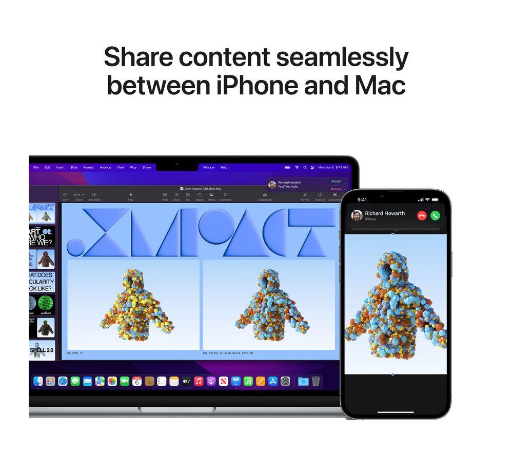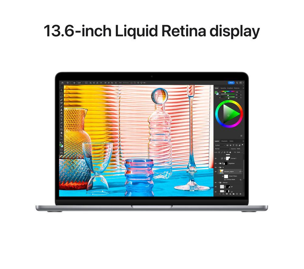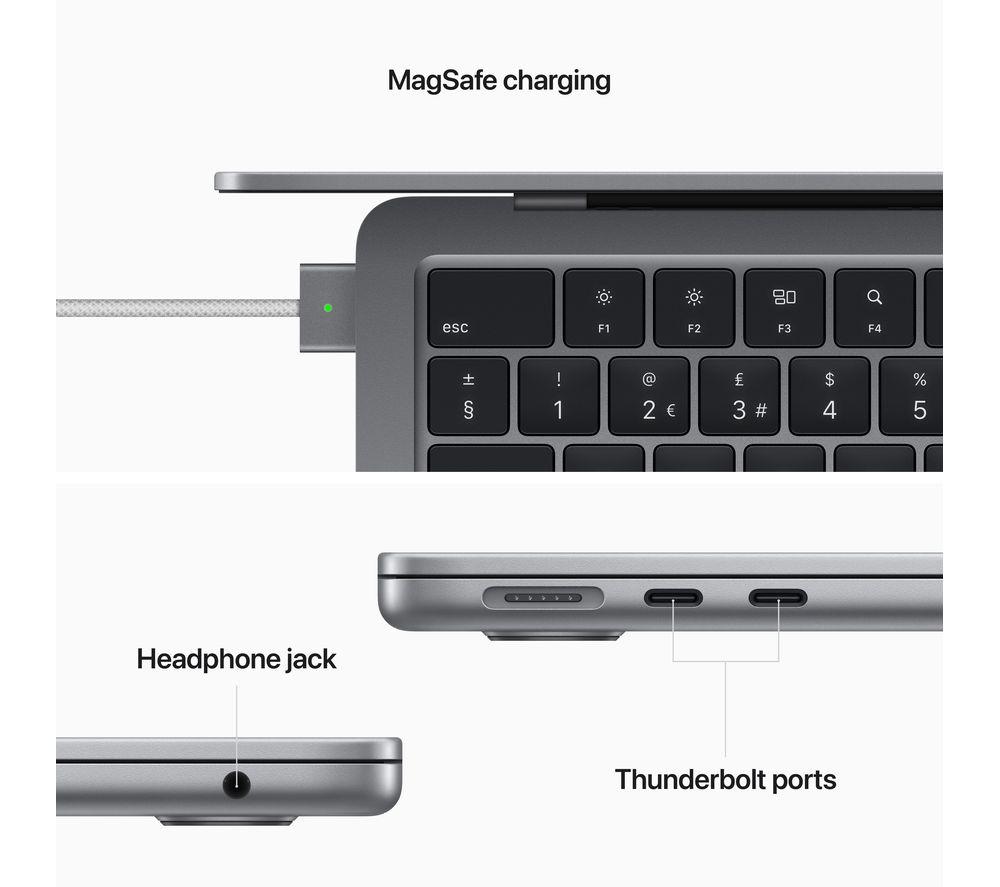 Your tasks, done faster. Built around the M2 chip, the redesigned 2022 MacBook Air has an improved CPU and GPU - 1.4x faster than the M1. And that's all while using less power. You get up to 18 hours of battery life, so you won't be hunting for plug sockets. That means it's a powerhouse for editing on the go - whether you're trimming down 4K footage or putting the final touches to an animation. And it's all wrapped up in a super thin yet durable all-aluminium enclosure.Good to know- Chat to your friends in sharp Full HD with the upgraded 1080p FaceTime HD camera- For complete colour accuracy when you're working on creative projects, the Liquid Retina display shows over a billion colours- True Tone technology automatically adjusts the brightness and warmth of the screen, so you can read in comfort- With improved vocal clarity and Spatial Audio support, the four-speaker sound system will add extra immersion to whatever you're watching- Touch ID lets you unlock your Mac with your fingerprint, so you can keep your files safe and shop online with Apple Pay- Connect everything you need (with speed) thanks to the two Thunderbolt 4 ports- The MagSafe cable attaches magnetically for an easy connection when you need to recharge- It's compatible with your most used apps, from Microsoft 365 to Zoom and loads of iPad and iPhone apps too- The 512 GB SSD lets you load up your photos and apps almost instantly