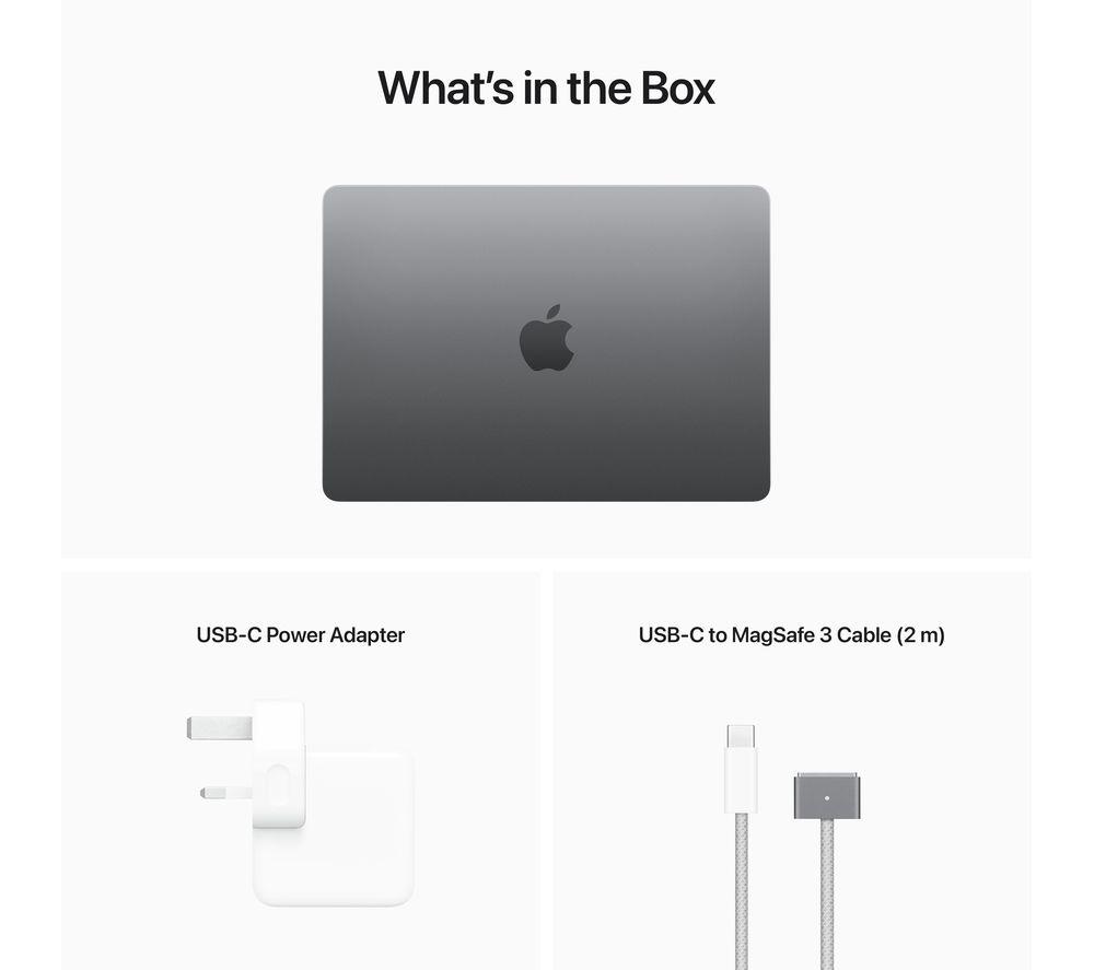 • Box contents :- Apple MacBook Air 13.6' (2022)- 30 W USB-C power adapter- USB Type-C MagSafe 3 cable (2 m)