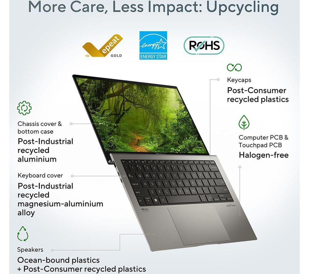 Thin and light laptops don't get much thinner or lighter than this. The Zenbook S only weighs 1 kg and it's 1 cm thin, but it packs impressive specs. Like a 13th gen Intel® Core i7 processor with Iris® Xe graphics that will power through your workflows. Combine that with a 2.8K OLED screen, and you've got an ultra-portable productivity machine. The screen is Pantone colour validated, which means it's perfect for creative work, watching movies and casual gaming. And it's got up to 14 hours of battery life, so you can leave the charging brick at home. Good to know - The 1 TB SSD gives you plenty of space for all your files – and it's darn fast, too - With the lightning fast WiFi 6E you can forget about the loading circle - Multitask without bogging down your system, thanks to the 16 GB DDR5 RAM - The screen has a 16:10 aspect ratio - that's similar to 16:9, just a little taller (and better) - The magnesium-aluminium alloy keyboard deck keeps the Zenbook S tough and lightweight - Forget passwords – Windows Hello signs you in using face recognition - With the two Thunderbolt 4 ports, you can connect to just about anything - There's also a regular USB-A port and HDMI 2.1 port for high-res displays - This laptop puts emphasis on sustainability with low energy consumption and recycled materials in the body and packaging ___________________________________________________________________________ Intel, the Intel logo, Celeron, Intel Atom, Intel Core, Intel. Experience What's Inside, Intel Inside, the Intel Inside logo, Intel Unite, Iris, Pentium, Thunderbolt, the Thunderbolt logo, and Ultrabook are trademarks of Intel Corporation in the U.S. and/or other countries.