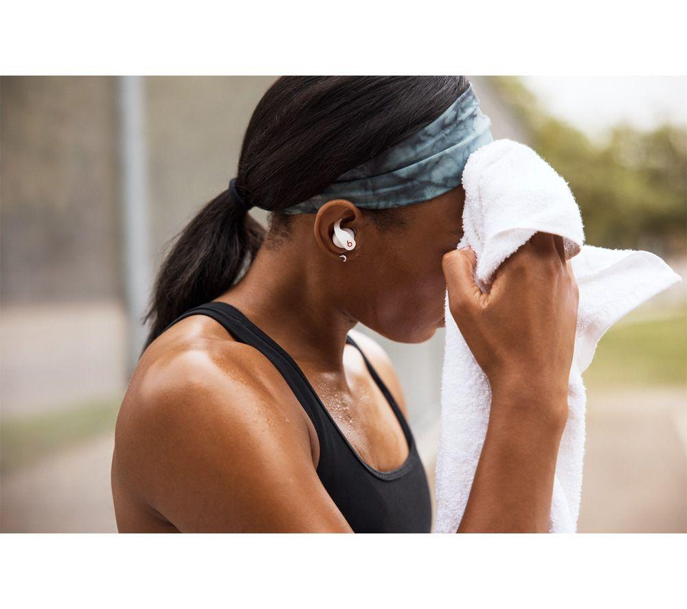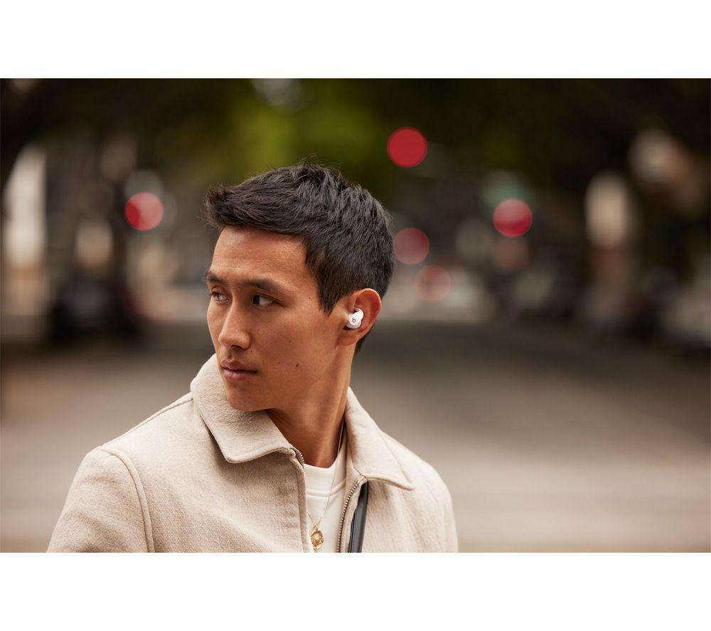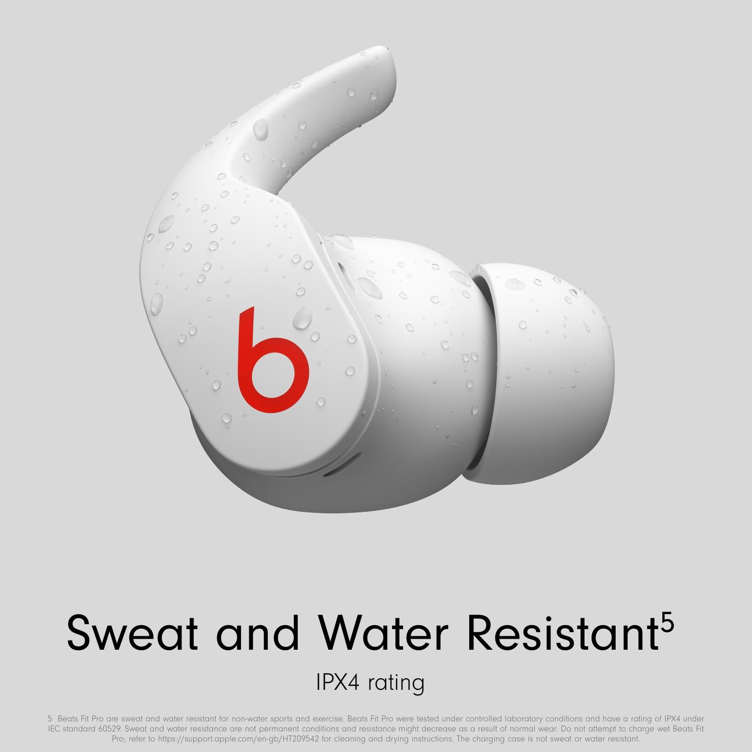These Beats Fit Pro earbuds are the perfect companion for your active lifestyle. Music, videos, and games feel super immersive thanks to Spatial Audio with dynamic head tracking – it adjusts the sound as you turn your head, giving you the feeling of being at a concert. The flexible secure-fit wingtips are flexible will stay put during even the most intense workouts. Dive into your favourite playlists and podcasts undisturbed with active noise-cancelling which blocks out your surroundings. And when you need to listen out for your platform announcement, switch to Transparency mode to let the outside world in.Good to know - They're powered by the Apple H1 chip – effortlessly sync with all your Apple devices and go hands-free- They have 6 hours of listening time with 3 extra charges in the charging case- A 5-minute Fast Fuel charge will give you up to 1 hour of playback when you need a little extra juice – perfect for when you're heading out the door- You'll always be heard loud and clear on your calls thanks to dual beamforming mics which pinpoint your voice and cut out external noise and wind- The Beats app lets you manage one-touch pairing, customise the controls, check the battery levels and more.- On-device controls let you manage your music, toggle listening modes, take calls and active your voice assistant- The sweat and water-resistant design makes them perfect for workouts\n______________________________________________________Please note:- Compatible hardware and software required for Spatial Audio. Works with compatible content in supported apps. Not all content available in Dolby Atmos. Head tracking feature requires iPhone or iPad.- One-touch pairing requires an iCloud account and macOS Sierra, iOS 10, watchOS 3 or later versions.- Automatic Switching requires macOS 11.1, iOS 14.3, iPadOS 14.3, watchOS 7.2, or tvOS 14.3 or later.- Audio Sharing is compatible with Beats Fit Pro, Beats Flex, Solo Pro, Powerbeats Pro, Powerbeats, Solo3 Wireless, Powerbeats3 Wireless, Beats Studio3 Wireless, BeatsX, AirPods (1st generation or later), AirPods Pro and AirPods Max. Works with iPhone 8 or later and iPod touch (7th generation) with the latest version of iOS, and 12.9-inch iPad Pro (2nd generation or later), 11-inch iPad Pro, 10.5-inch iPad Pro, iPad (5th generation or later), iPad Air (3rd generation) and iPad mini (5th generation) with the latest version of iPadOS.