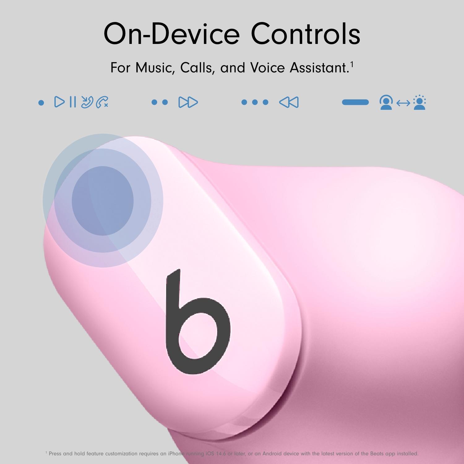 Music without distractions Enjoy your music undisturbed by noise with the Beats Studio Buds Wireless Bluetooth Noise-Cancelling Earbuds. Their dual-element diaphragm drivers pump out rich and balanced sound that will immerse you in your music. With active noise cancelling you can tune out the traffic noise, bus rumble or coffee shop chatter and focus on your music or podcast. But when you need to listen out for your train announcement, transparency mode lets you listen to the outside world at a moment's notice. Simple pairing and controls No need to fumble around with settings – the Studio Buds make connecting to a new device nearly effortless. Whether you're using Apple or Android device, one-touch pairing will make your life easier. Thanks to touch controls on the earbud you can leave your phone in your pocket. Simply tap the earbuds to control music, manage calls or summon Siri if you need assistance. Stay charged, keep listening To see you through your day the Studio Buds offer 8 hours of listening time, with two additional charges in the charging case. That's up to 24 hours of wireless music, movies and podcasts in your pocket. And thanks to their IPX4 rating you don't need to be afraid of a bit of sweat or water. So you can keep listening even during a workout or a run.