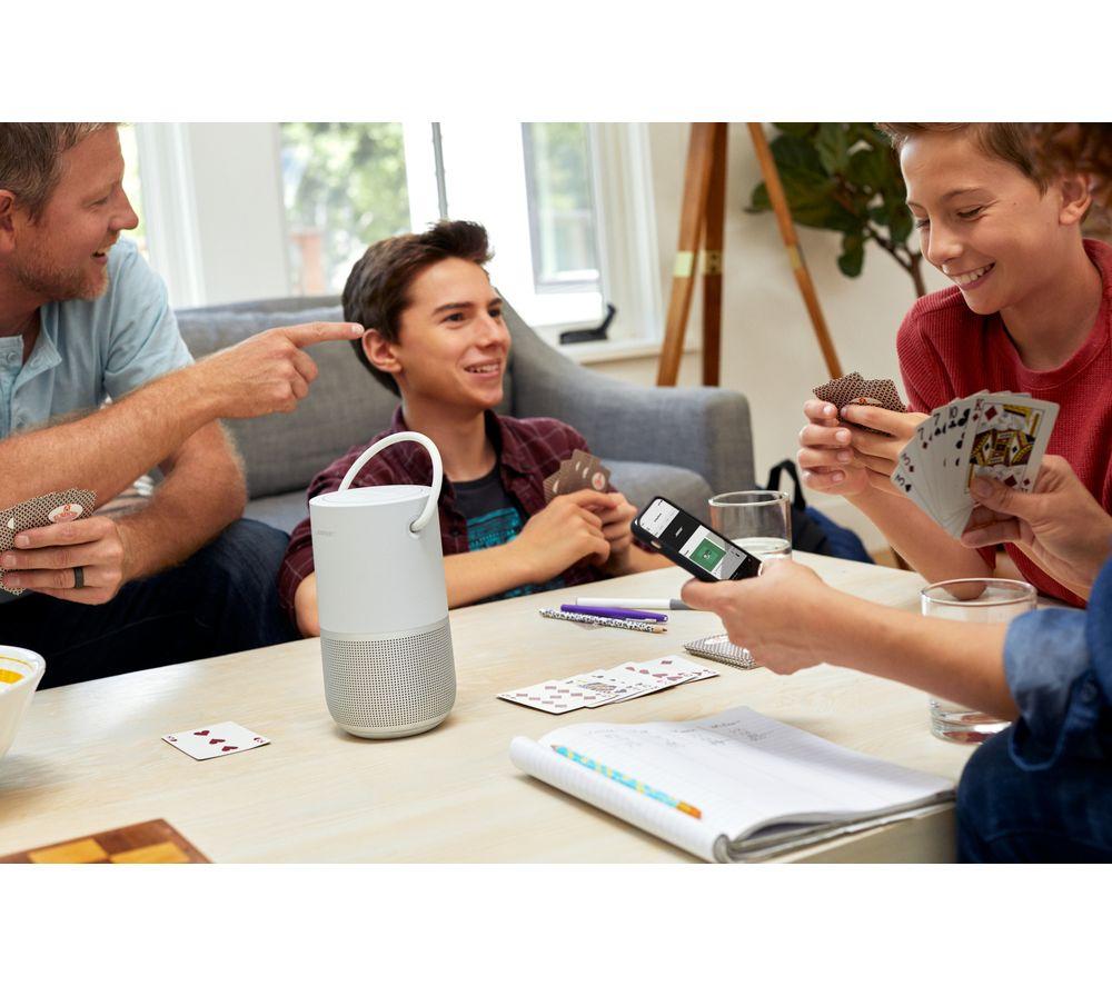 Music, anywhere, everywhereThe Bose Portable Wireless Multi-room Home Smart Speaker is a wireless home speaker, a portable Bluetooth speaker, and a voice-controlled speaker, all in one.360° soundPut the Portable Home Smart Speaker in the middle of the party and everyone will experience the same clear sound. Or to take advantage of the deep bass, place it near a wall to radiate sound all around you.Voice assistantWith Google Assistant and Amazon Alexa built-in, it's never been easier to play music, podcasts, radio stations, and audiobooks. Plus, you can get the weather, send messages, set timers, control your smart home, and much more.Multi-roomGroup speakers to play music in different rooms and control it all on the app. With all your music in one place, streaming is super easy.Durable designBecause it's designed to be taken with you, the Portable Home Smart Speaker has been engineered to withstand bumps, drops, and water splashes.___________________________________Please note: Multi-room and voice control only available over WiFi.