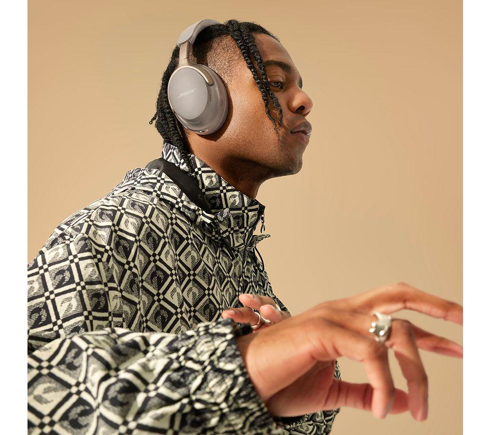 Step into the groove with these Bose QuietComfort Ultra Bluetooth headphones. Bose Immersive Audio adds depth and a sense of space to your favourite tracks so they feel more real. It's like someone lifting your tunes from your head and placing them in the acoustic sweet spot right in front of you. CustomTune technology analyses the shape of your ears and adjusts the sound so it's perfect for you. Think of it like having your own personal sound guy following you around. And the plush ear cushions are so soft and comfy it feels like they're giving your ears a cuddle.Good to know- Choose how much of the world you want to let in with Quiet Mode, Aware Mode and Immersion Mode- Enjoy epic playlists with up to 24 hours of battery from a single charge using the USB-C cable- With quick charge, you can get an extra 2.5 hours of battery from just 15 minutes charging- Phone calls are crystal clear thanks to noise-rejecting mics – they filter out the hubbub so you can hear every word- Tweak the volume, skip tracks and answer calls using the simple touch controls on the earcups- Keep your headphones safe and sound when you're on the move in the handy carry case