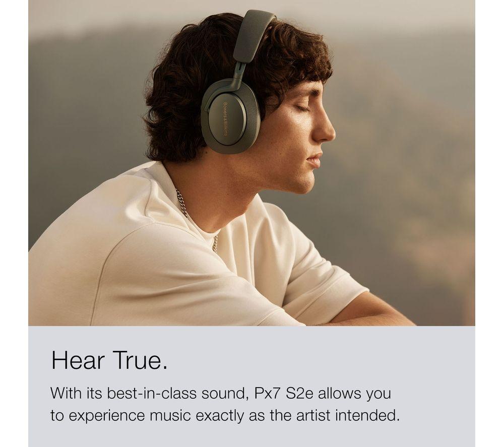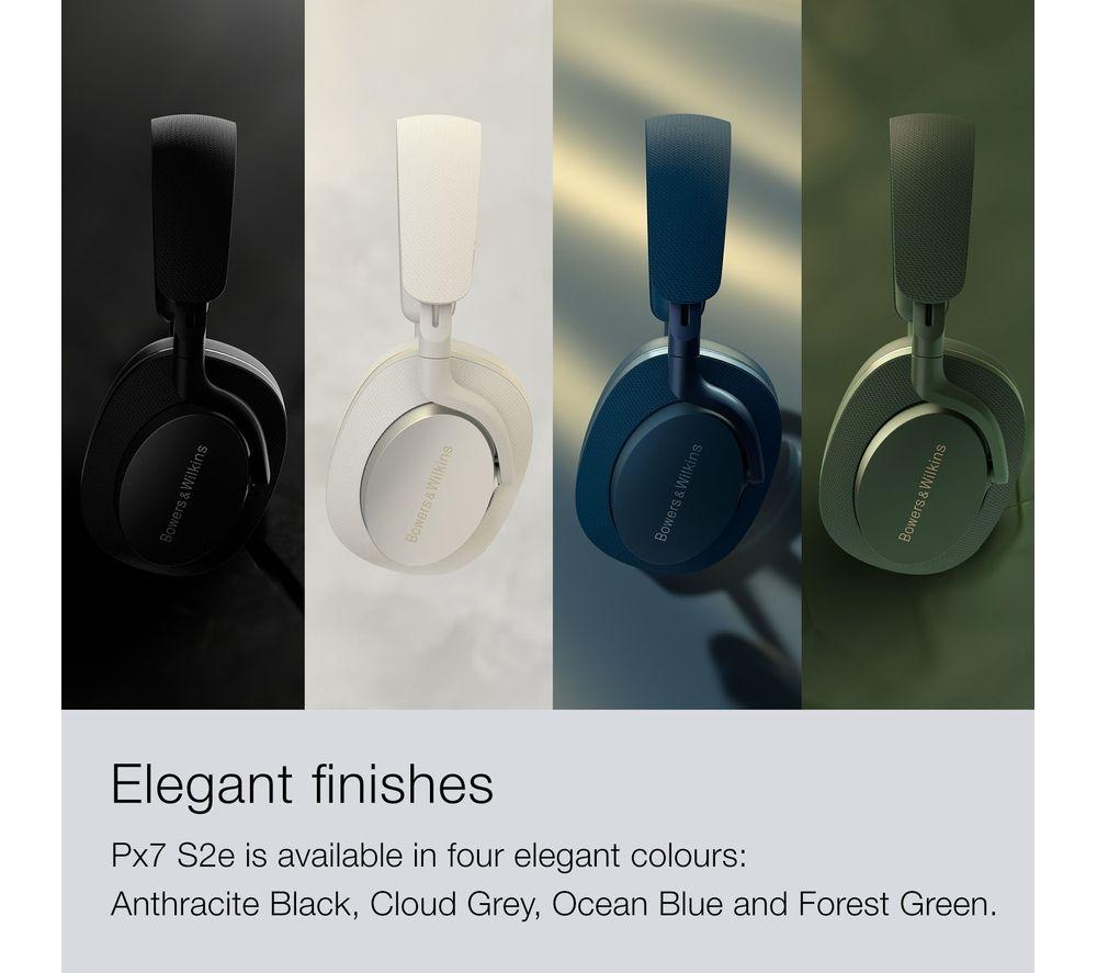 You've never heard your music like this before. These Bowers & Wilkins Px7 S2e headphones are loaded with custom 40mm drivers. They're inspired by their loudspeaker big brothers and give you crystal clear, focussed sound with plenty of oomph. For those times when the world feels too loud, flick on the 6-microphone noise cancellation and it's goodnight Vienna to all those annoying distractions. And the best part is that your music's dynamics and energy stay perfectly intact. They're mighty comfy too. Decked out with snug memory foam earpads and an easy-on-the-eye design, you'll want to keep these babies on all day long.Good to know- Get back to your music quickly with Quick Charge – 15 minutes of charging gives you a whopping 7 hours of listening time- Tweak your EQ settings or choose your level of noise cancellation with the Bowers & Wilkins Music App- Call upon your favourite virtual assistant with a push of a button- With up to 30 hours of battery life you can enjoy your epic entertainment all day- The fold-flat design fits snuggly in the included carry case - keep them safe when you're not using them