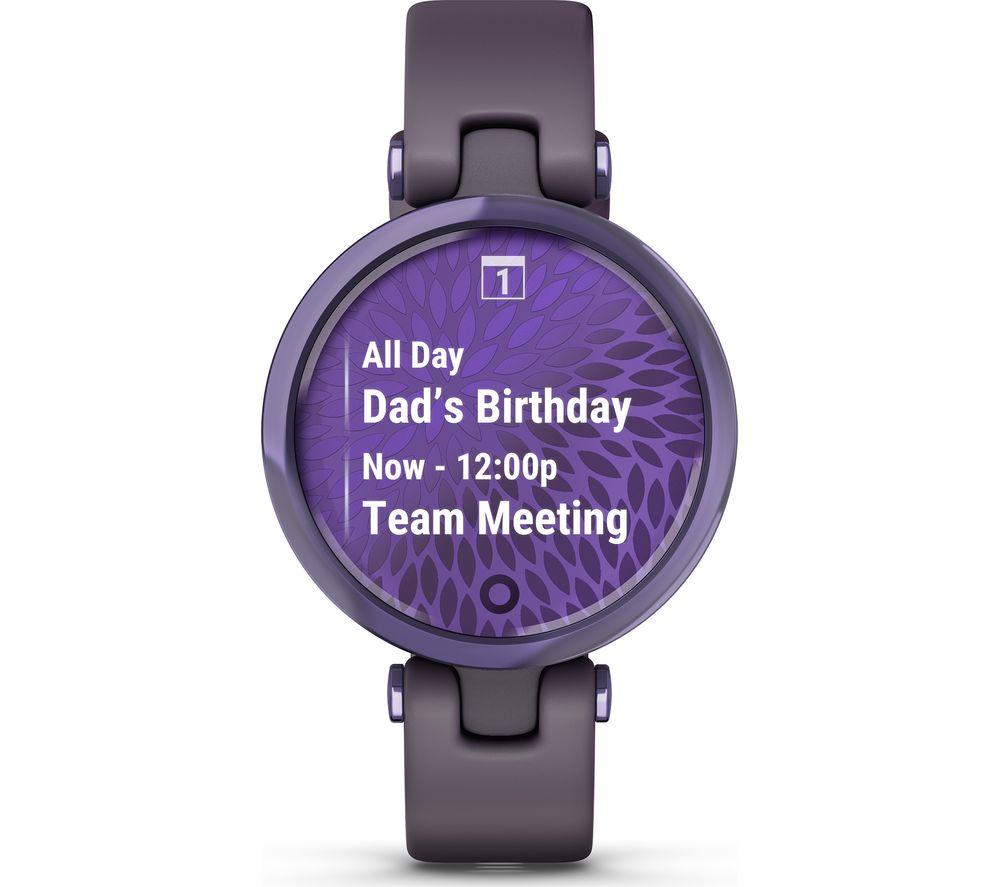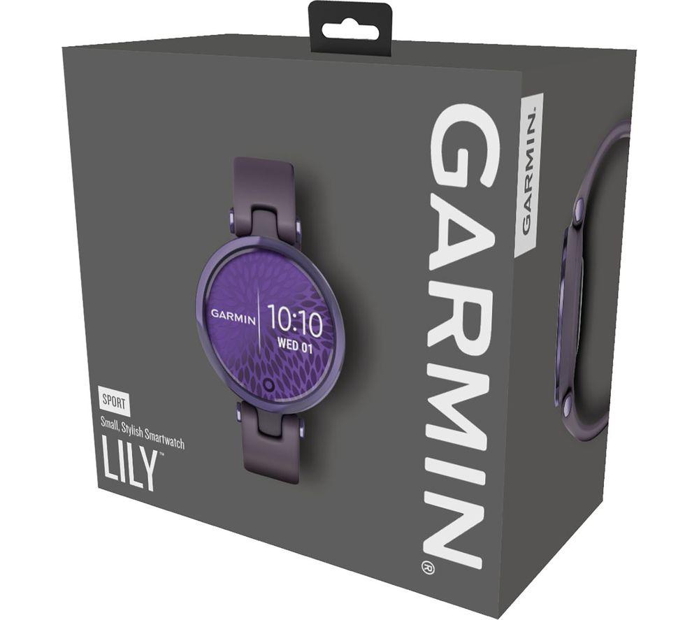 Stylish and functionalBalancing functionality and style, the Garmin Lily Sport Edition looks great with any outfit and lets you track your activity at the same time. The bright touchscreen display comes to life with a flick of the wrist. When it's time for a new look, you can switch up the strap (sold separately) or download new faces from the Garmin Connect IQ store.Stay connectedSmart notifications let you know what's going down in the group chat without being glued to your phone. See your texts and instant messages on the bright, AMOLED touchscreen.Work out with GarminThe Garmin Lily Sport Edition allows you to track yoga, pilates, cardio, mindful breathing and more with sports apps. You can even take it swimming as it's waterproof up to 5 ATM.For peace of mind, when you're going on a run somewhere new, LiveTrack will allow your emergency contacts to see your route in a real time.Everyday health trackingKeep track of your daily step count, the floors you've climbed, and calories burned throughout the day. Body Battery finds the best times for activity and rest by measuring your heart rate, menstrual cycle, pregnancy, hydration, respiration, sleep and more.
