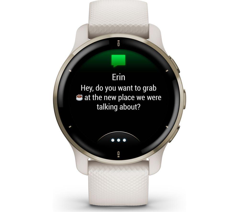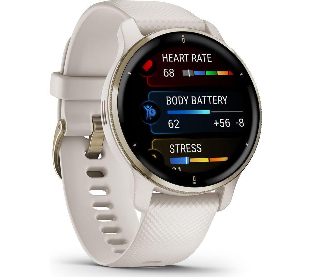 With its hands-free controls and sports tracking features, this Garmin smartwatch is perfectly suited for busy lifestyles. What we love - Works with your phone's voice assistant - so you can respond to messages, make calls and control your phone hands-free - Track your indoor and outdoor workouts thanks to the 25 built-in sports apps - Body Battery finds the best times for exercise and rest by measuring your heart rate, blood oxygen, hydration, respiration, sleep and more Good to know - Try a new look by downloading watch faces from the Garmin Connect IQ store - Garmin Pay lets you make contactless payments – perfect for when you're grabbing a quick coffee - Health monitoring helps you keep trackof your daily step count, the floors you've climbed and calories burned throughout the day - Smart notifications let you stay on top of your messages while your phone stays in your bag - Download up to 650 songs straight from Spotify, Amazon Music or Deezer, so you can stay motivated while you exercise - You'll see everything clearly on the bright AMOLED touchscreen - Incident detection will let your emergency contacts know your location if there's an accident, giving you peace of mind when you go for a run - Up to 9 days of battery life, so you won't have to charge it every night