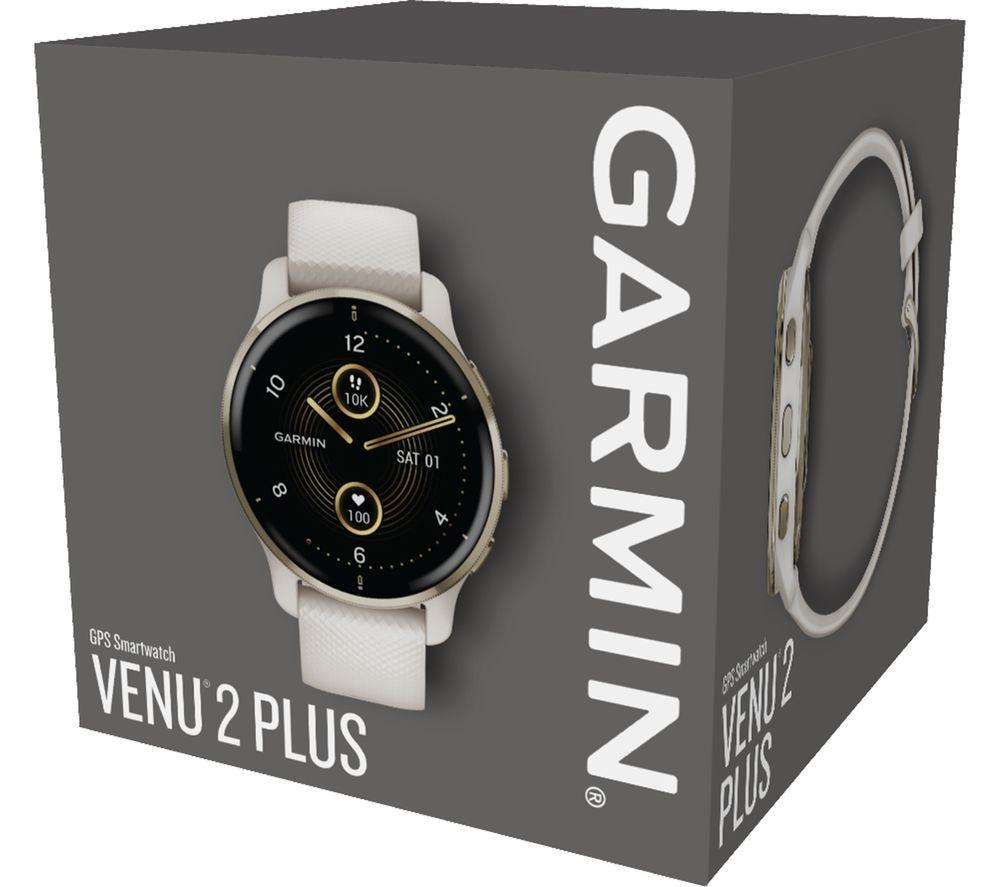 • Box contents :- Garmin Venu 2 Plus- Charging cable- Documentation