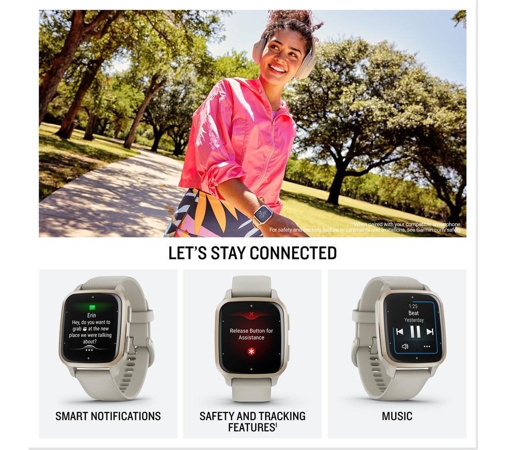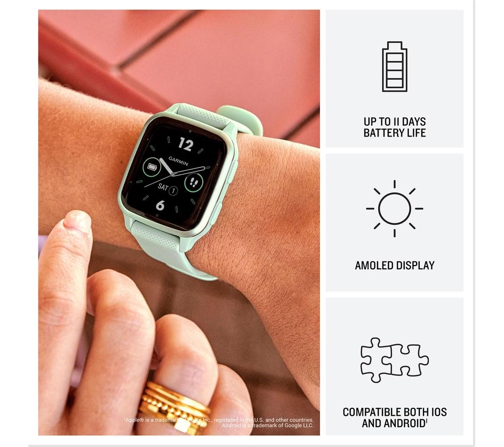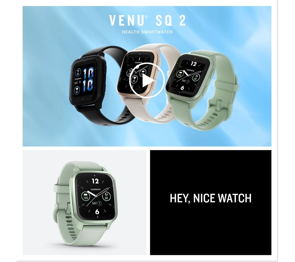Good-looking, practical, sporty. There's a lot to love about the Garmin Venu Sq 2 Music. It's got a large, bright AMOLED display that's easy to read at a glance. Garmin have almost doubled the battery life from the original Sq – it can go up to 11 days in smartwatch mode, so you won't need to take it off every night to charge. That means you'll get a more accurate picture of your health, from workouts to sleep and everything in between. Find your stride with the perfect motivational soundtrack - this watch can store up to 500 songs, so you can leave your phone at home. Load it up with music playlists from Spotify, Amazon Music, or Deezer, and listen on your wireless headphones.Good to know- Track your energy levels, sleep, heart rate, respiration and more with all-day health monitoring- There are over 25 sports apps, including cycling, HIIT, swimming, and golf- Pick from free pre-loaded workouts or create your own in the Garmin Connect app- Prepare for your next running challenge with Garmin Coach adaptive training plans- You won't miss any important notifications once paired with your Apple or Android phone___________________________________Please note: A Deezer premium subscription is required to download playlists to the watch from Deezer.