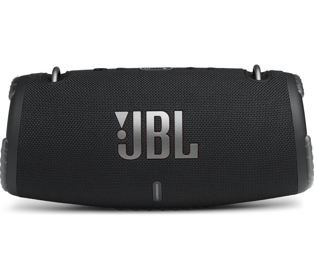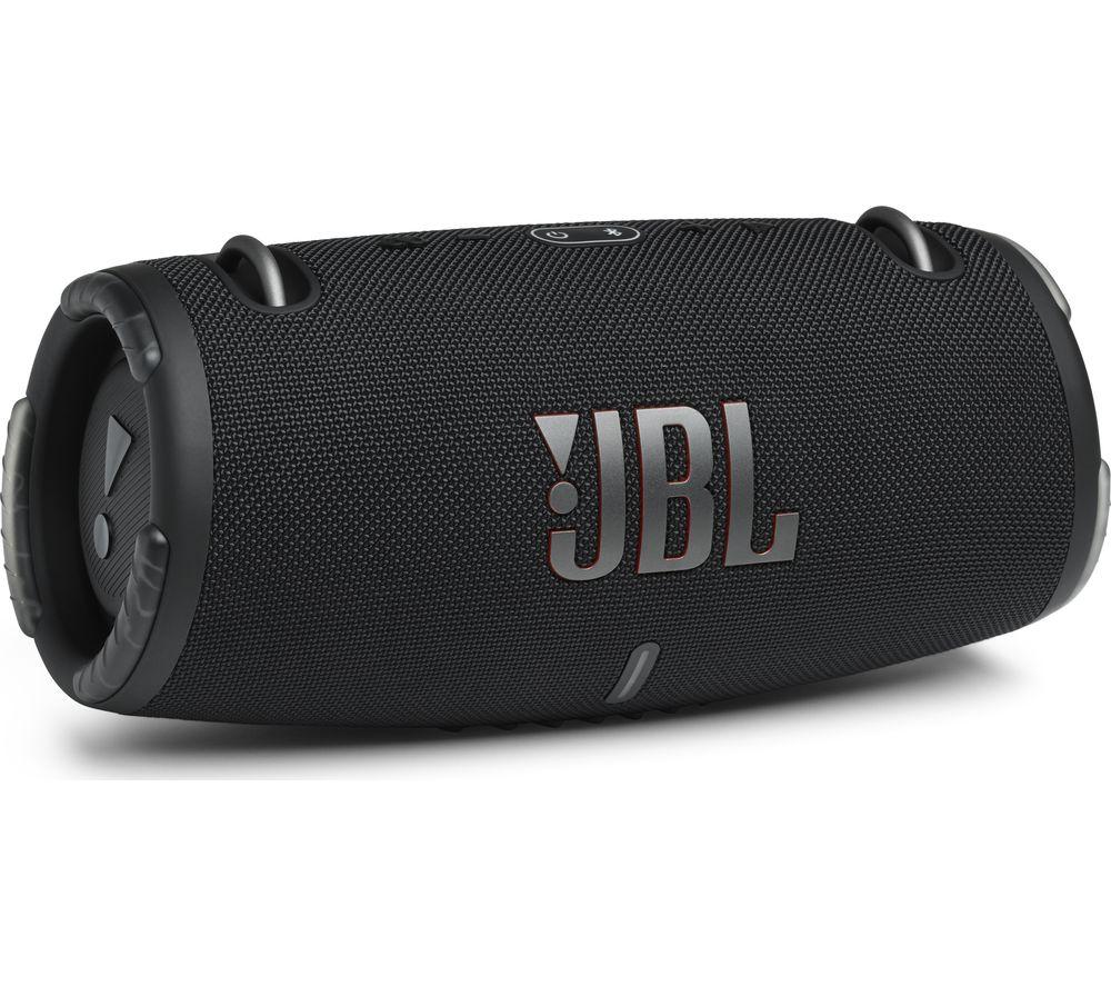 Listen all day Bring a party-proof music setup wherever you go with the JBL Xtreme 3 Portable Bluetooth Speaker. This new generation features even more power, updated Bluetooth and lighter weight while offering better protection at the same time.With a battery that can last up to 15 hours on a single charge, the JBL Xtreme 3 is ideal for days in the park, festivals and adventures. Passive bass radiators can be seen on both sides of the unit, so you're able to hear the percussion and bassline exactly as the producer intended, even outdoors. And if you're out for the whole day, the USB port makes a handy charging station for your phone or tablet. Keep the music going without worrying about drained devices. Pair two devices Sometimes it's nice to sit back and discover what your friends have been listening to. The JBL Xtreme 3 lets you do just that with Bluetooth 5.1 connectivity. You're able to connect two phones at the same time, so you can either take a break at the controls or take turns supplying the tunes with a friend. Connect over 100 speakers Amplify your Xtreme 3 listening experience thanks to the JBL PartyBoost app. As well as simplifying the setup process, it's great for adding speakers to your party and making the sound that much more immersive. With the ability to add over 100 speakers, you'll never find the sound falling flat. Take your speaker to the pool Whether you're at the beach, by the pool or exploring, you don't need to worry about shielding your JBL Xtreme 3 Portable Bluetooth Speaker from the elements. An IP67 rating means that your speaker will sound glorious even if it gets dropped in water a metre deep. So, splashes and spills will never rain on your parade.