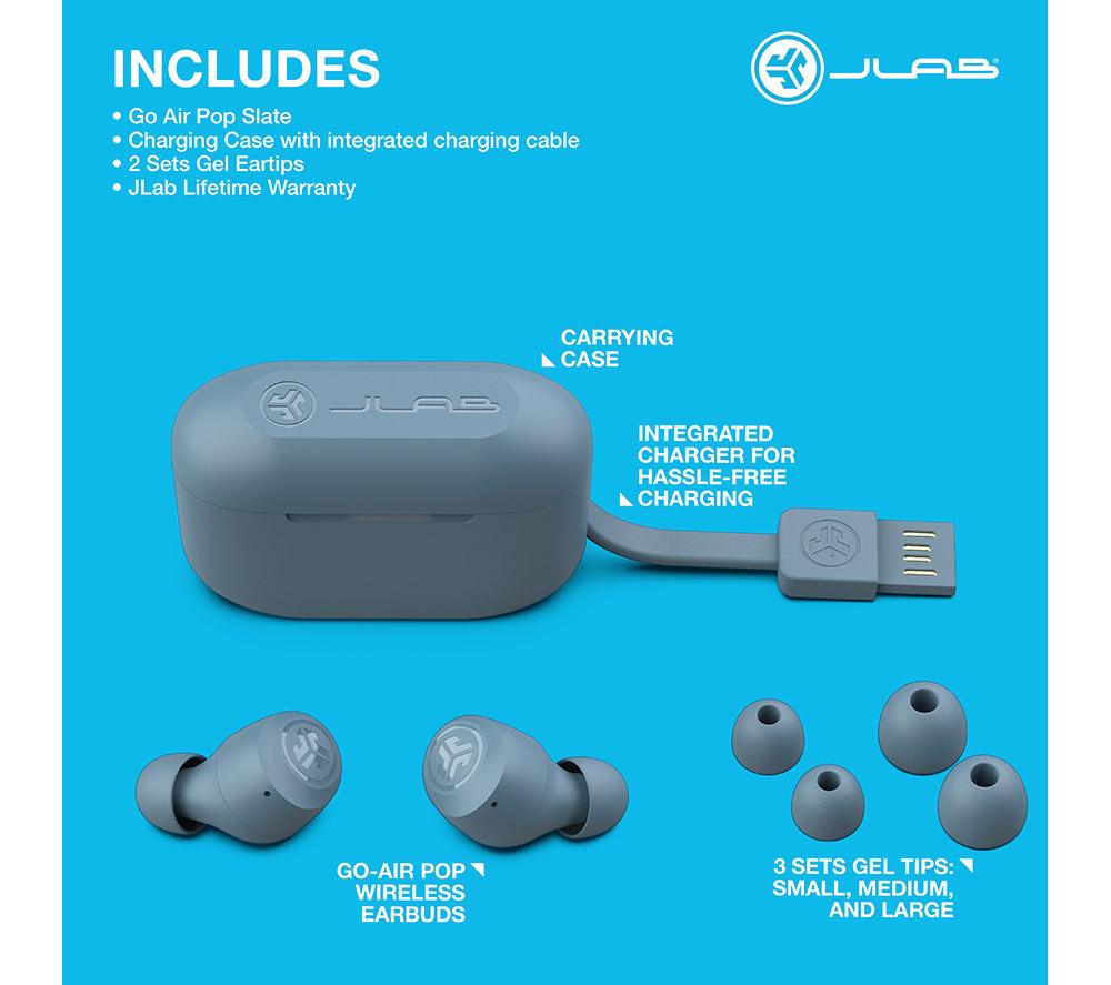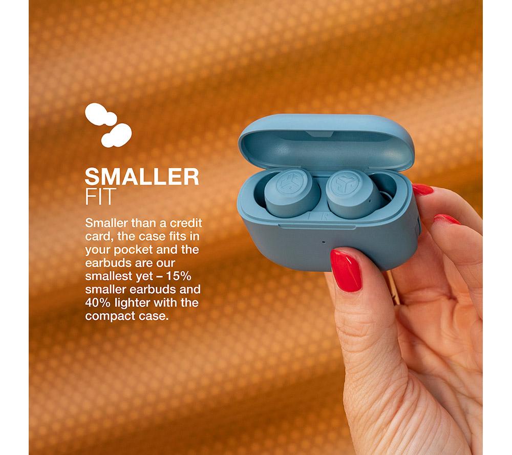 Good to know - With these JLAB wireless earbuds you can enjoy your music for up to 32 hours - 8 from the buds and 24 from the case - The charging case is tiny, lightweight and has a built-in USB cable, so it'll all fit nicely in your pocket - By tapping the earbuds you can cycle through 3 EQ modes to suit your playlist - no app necessary - The touch controls let you change volume, control music or calls, and summon your voice assistant - Thanks to the IPX4 rating you can be sure that the earbuds will survive a rainy day or a sweaty gym session - You can use just one earbud and leave the other one in the case - handy for phone calls