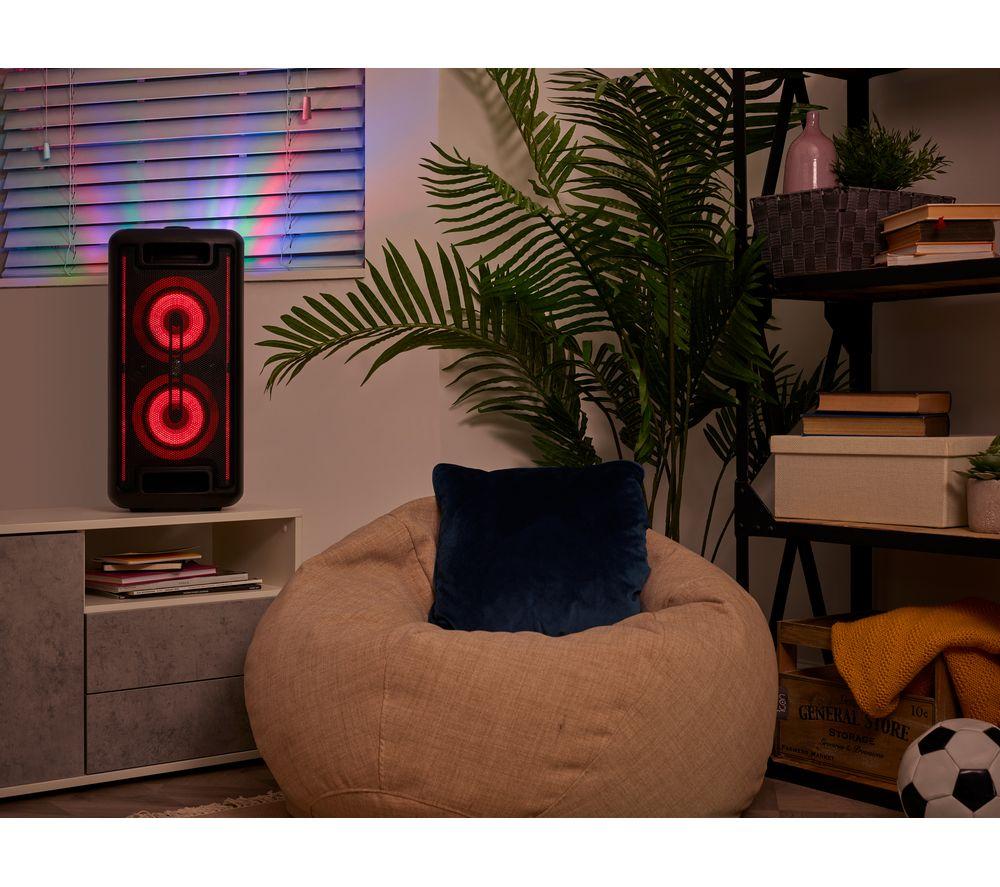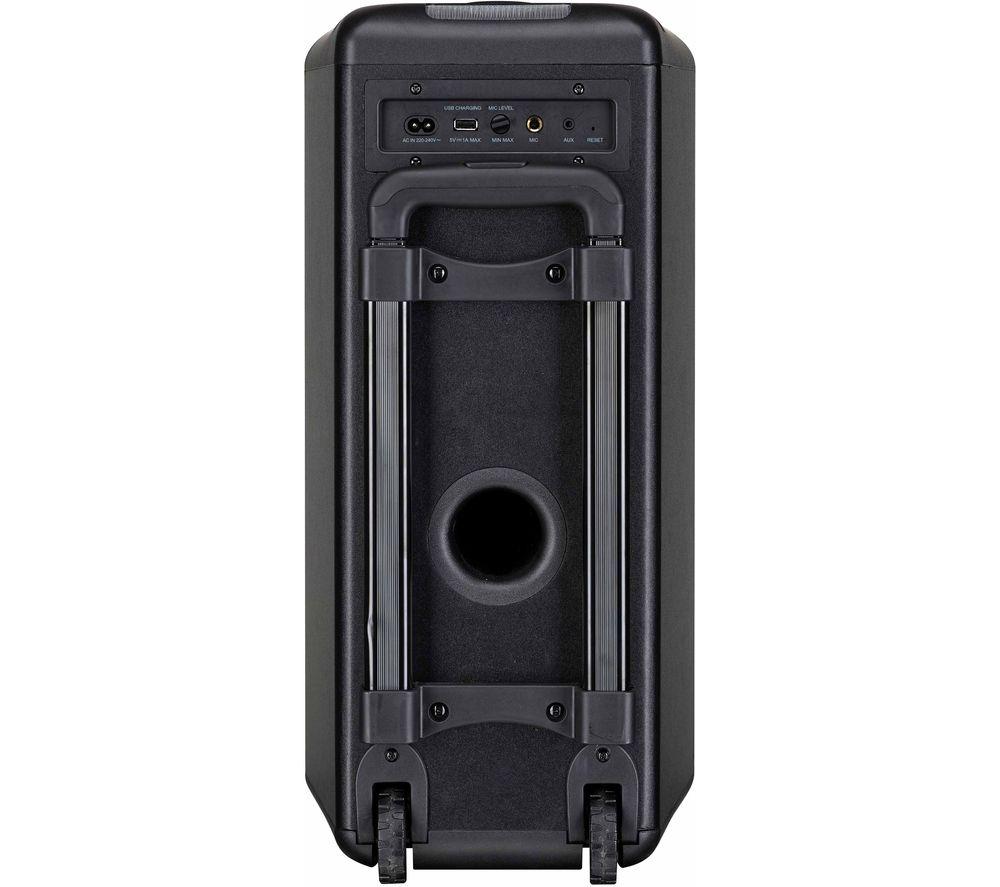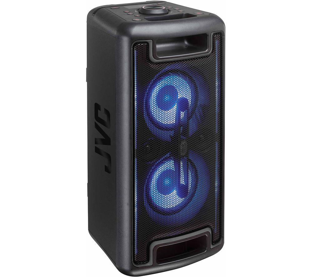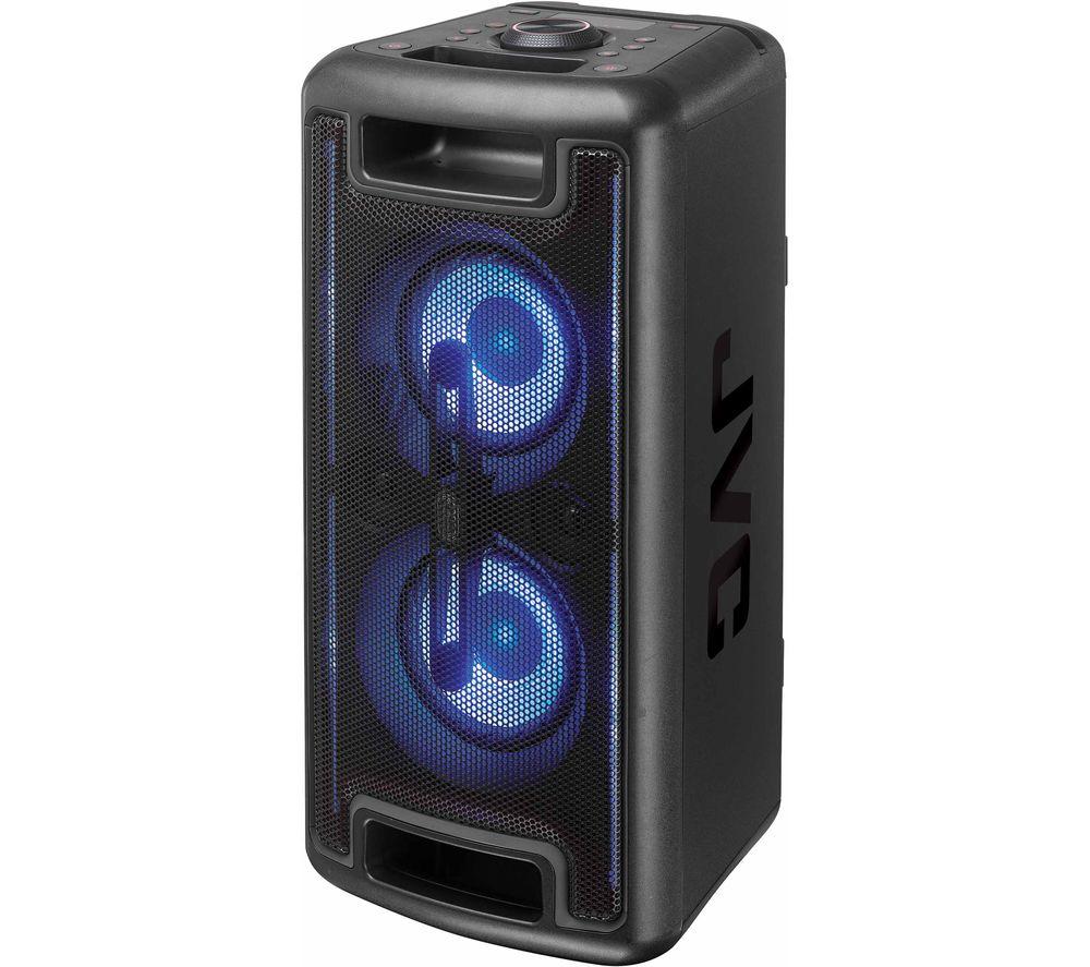Party for longerThe JVC MX-D719PB Portable Bluetooth Speaker has an incredible 26 hours of power from a full charge, so if you're outside, you can be sure your speaker won't quit before you're ready to. If you've got the luxury of a power outlet, just plug in and you're set for a party that never has to stop.Sound quality that packs a punchBass Booster mode to gives your music that bit of extra energy, for audio that fills the room. Whether you're into club classics, rock anthems, or EDM, everything will sound fuller, punchier and 3-dimensional. The flashing LED lights are great for bringing a bit of party atmosphere too!You can even pair two speakers together to create true stereo soundsystem for a middle sized event.Playback that suits youAs well as Bluetooth, there's an aux-in jack and USB port - however you store your music you've got options. If you're on-the-go, the trolley handle and wheels make it super easy to transport your MX-D719PB Speaker, so taking the party with you is effortless.There's a microphone connector too - you never know if the night will end with some Karaoke (we won't judge).If in need, the USB port can serve you as a charger for your phone.
