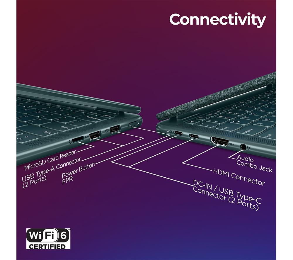 Thin, light and flexible, the 2-in-1 Lenovo Yoga 6 is built for bringing everywhere. Scribble down lecture notes on the Full HD touchscreen and type out your essay when you get to the library. From video editing to managing large projects, the AMD Ryzen 7 processor has you covered. With eight cores of power, you can blaze through assignments. When you're done working on it like a laptop, use the 360° hinge for streaming in tablet or tent mode. Good to know - With 100% sRGB, colours look vivid and accurate – just what you need for editing photos - Experience immersive audio with Dolby Atmos front-firing speakers - Facial recognition lets you securely sign in without passwords- At just under 1.4 kg, you can pop it in your backpack without being weighed down - 16 GB of RAM is the sweet spot for smooth multi-tasking - The webcam privacy shutter lets you decide when you want to be seen on camera - With 512 GB SSD storage, you have plenty of space for the important stuff - Up to 12.5 hours of battery life means less time spent searching for sockets