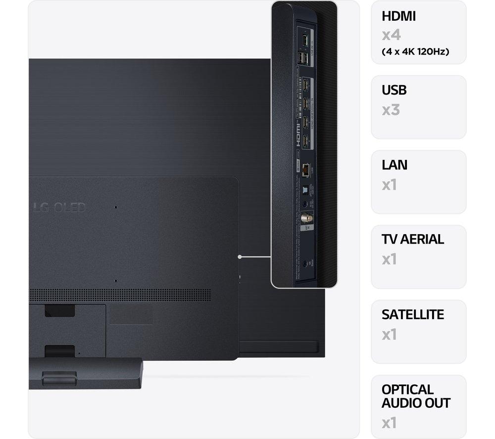 • Connections :- HDMI 2.1 x 4 (eARC compatible x 1)- USB 2.0 x 3
