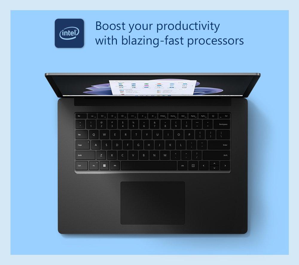 Whether it's office work, school assignments or some evening gaming, the Surface Laptop 5 will help you get it done. The 12th gen Intel® Core i7 under the hood has plenty of power for your everyday tasks. Want to kick back with a movie instead? The Dolby Vision 2 touchscreen and Dolby Atmos speakers will bring it to life. The screen has an extra-tall 3:2 aspect ratio, giving you more space to be productive or creative. And the laptop's wrapped in a full-metal body, which gives it a premium look and feel, while keeping it lightweight.Good to know- The Intel® Iris® Xe integrated graphics gives the Surface extra power for editing photos and videos or playing games- Multitask your heart out – there's 8 GB of DDR5 RAM for smooth performance- Forget passwords! Just smile at the camera and Windows Hello will sign you in- Don't worry about connectors, the Thunderbolt 4 port can handle just about anything – from 4K monitors to super-fast SSDs- With WiFi 6, you'll have fast and steady internet connection – bye, bye loading circle!- The 512 GB SSD gives you plenty of space for your files and lightning-fast system___________________________________________________________________________Intel, the Intel logo, Celeron, Intel Atom, Intel Core, Intel. Experience What's Inside, Intel Inside, the Intel Inside logo, Intel Unite, Iris, Pentium, Thunderbolt, the Thunderbolt logo, and Ultrabook are trademarks of Intel Corporation in the U.S. and/or other countries.