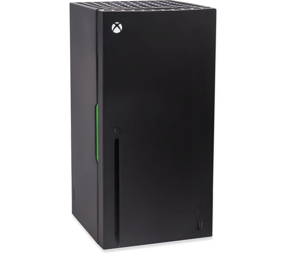 Sit back, relax and game away with this Microsoft Xbox Series X & Xbox Replica Drinks Cooler (10 L) Bundle. ___________________________________________________________________________ Microsoft Xbox Series X - 1 TB Featuring re-engineered hardware and software integration, Xbox Velocity Architecture delivers superior speed and performance like you've never seen before. Ready for 8K gaming with speeds up to 120 fps, you'll experience lightning-fast gaming with incredible detail. Xbox Series X features parallel cooling architecture. The unique split motherboard design keeps components at an even temperature, while the whisper-quiet fan won't distract you from the final boss fight. The new Wireless controller is a thing of beauty. Take aim with the textured grip and hybrid D-pad and share your gameplay at the click of a button. Pairing with the Xbox Series X in seconds, you can seamlessly switch between compatible consoles, PCs and mobile devices. The Xbox Series X also features the revolutionary new Xbox Velocity Architecture. It provides improved loading times, stable frame rates and higher resolutions to thousands of your favourite Xbox One, Xbox 360 and even original Xbox games. ___________________________________________________________________________ Xbox Series X Replica Drinks Cooler - 10 litres, Black & Green - Keep your drinks and snacks cool while you're playing with this official Xbox mini fridge made by Ukonic - The backlit top grille and Xbox logo set the mood and match your console - Just like on your Xbox, the USB port lets you charge a controller or your phone - You can use it even while travelling and camping - just connect it to a car socket