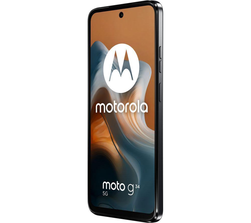 Your favourite apps, games and shows will look great on the moto G34's HD+ display. It runs at a 120 Hz refresh rate, which makes it beautifully smooth. And to match those great visuals, there are stereo speakers and Dolby Atmos support. With deeper bass, crisp clear vocals and multidimensional sound - so go ahead and start that binge. You don't even need WiFi. With 5G connection, you can have lightning-fast internet anywhere you go. Good to know - The 5000 mAh battery means you can watch videos or play games for hours - Fast charging means you can get hours of power in just a few minutes - The powerful Snapdragon 695 processor powers through apps and browser tabs - A 50 MP dual camera system captures loads of details in your photos - Need more space? You can add up to a 1 TB microSD memory card