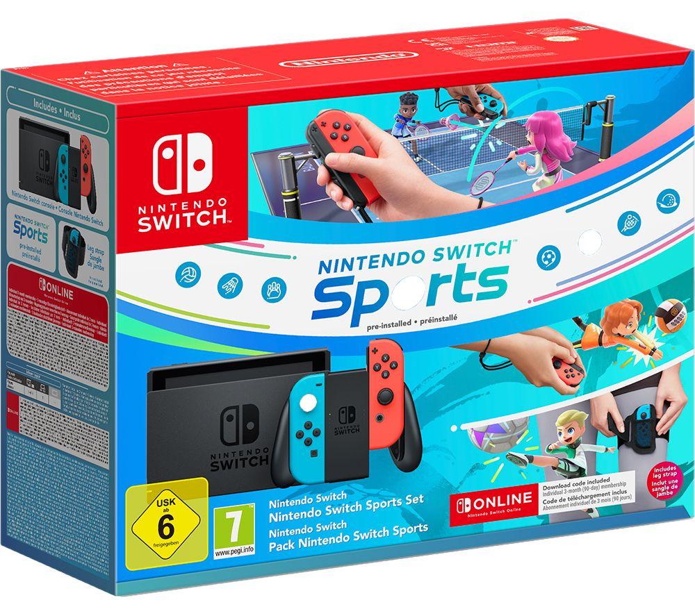 Get a new console and your first game with the Nintendo Switch & Sports Bundle._____________________________________________________________Nintendo Switch - Neon Red & BlueThis new version of the Nintendo Switch has all the same great features of the original Switch, just with a much longer battery life. Depending on your game, you'll get from 4.5 up to 9 hours of battery. Now when you're stuck on long journeys, you'll have even more gaming time.The Nintendo Switch is designed to go wherever you do. With the ability to transform between a home console and a portable system, the Switch lets you play your favourite games for longer. Connect the HDMI cable to your TV to enjoy a traditional console gaming experience, or prop up the stand attached to the back of the device to play games on its built-in screen. When the time comes to leave the house, you can carry on gaming by attaching the twin Joy-Con controllers to the console and using the 6.2\