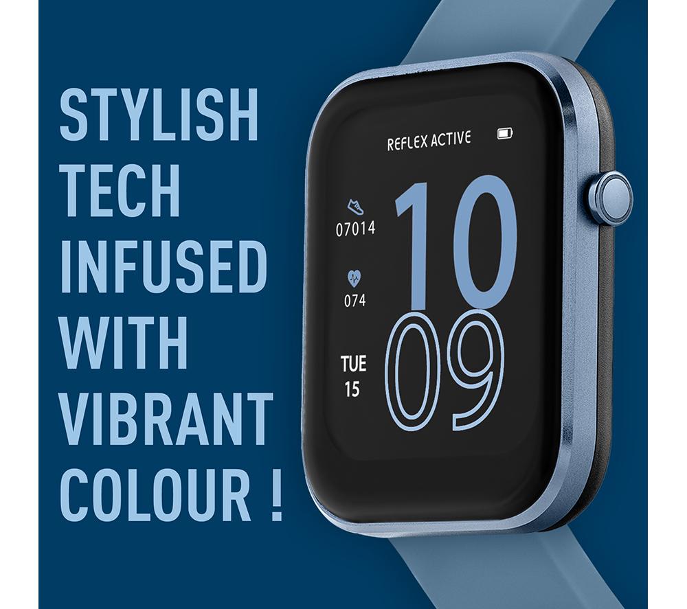 Meet your new gym partner. With this Reflex Active S12 smart watch, you can smash your fitness goals with its multiple sports modes. Pick from activies like cycling, running, or skipping, and away you go. Get regular wellness reminders, such as water breaks, throughout your day, to keep yourself well-hydrated. Be it the heart rate, sleep or calories, track them all with the different health options to keep your fitness in check. Good to know - Rings or pings, get your incoming calls and message alert instantly - Your watch, your style – with the photo dial, change your look in seconds with your fav selfie from your phone - With the selfie camera control just snap when everyone's looking their best - no more awkward angles - Get live weather updates, so you don't need to check your phone every time - Misplaced your watch again? No problem - just use the watch locator function - Its IP68 water resistance means you don't have to worry about spills and splashes